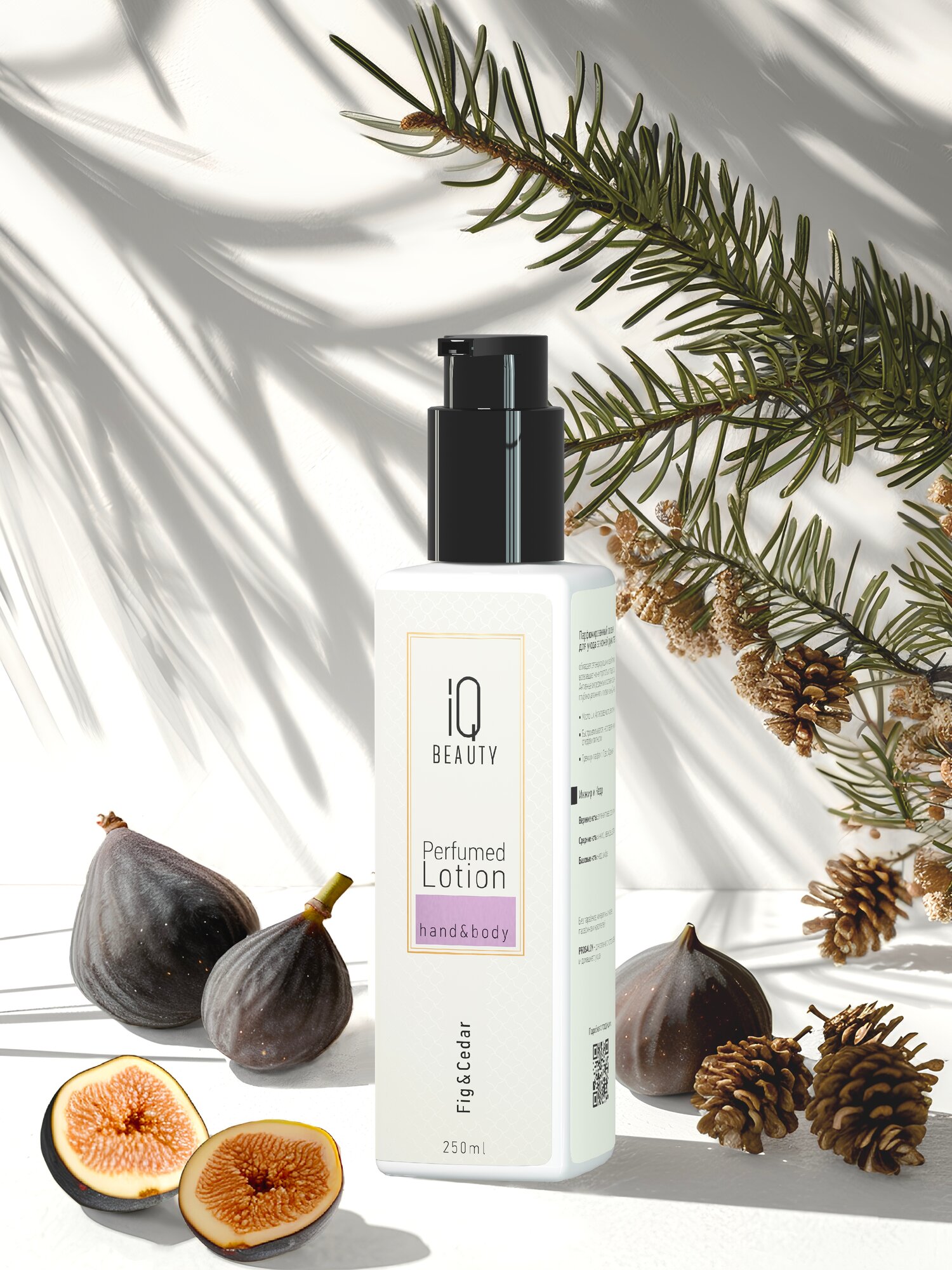 Perfumed lotion hand&body Fig&Cedar от IQ BEAUTY - премиум парфюм - уход с активными ингредиентами в формуле, который глубоко увлажняет и питает кожу 24 часа, оставляя роскошный аромат инжира и кедра.