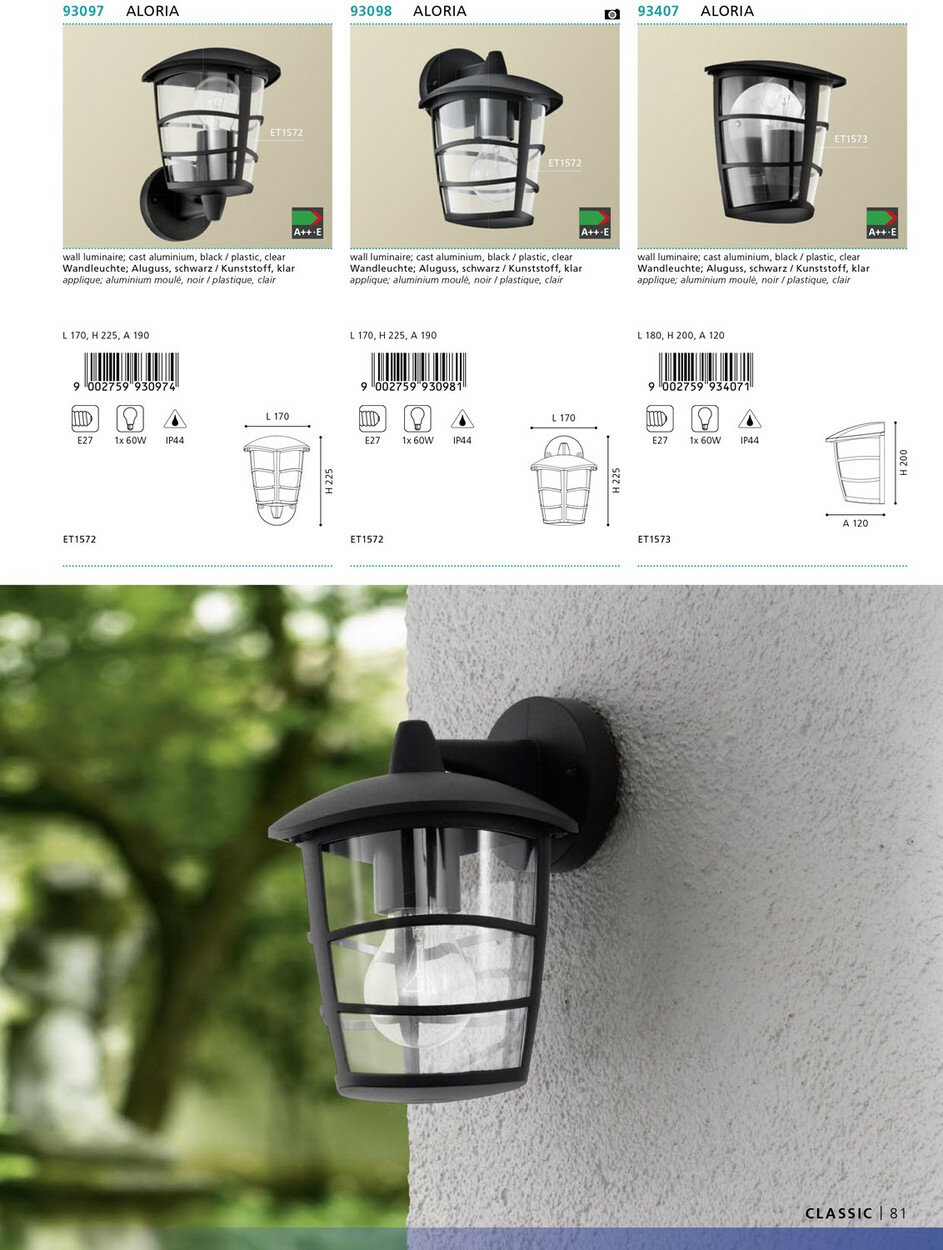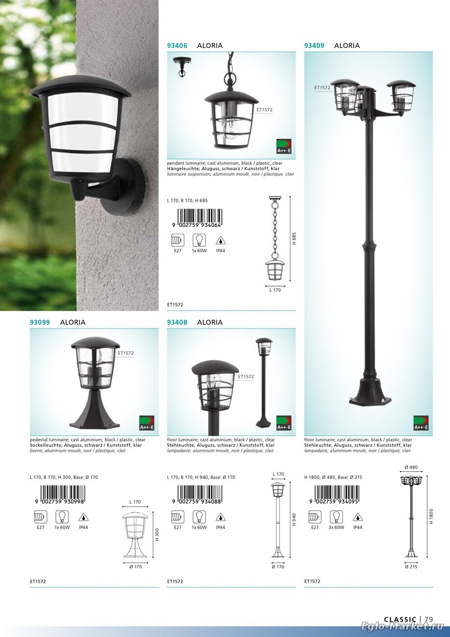 Сервис сравнения цен СкидкаГИД предлагает сравнить цены на товар «Светильник уличный Eglo Aloria 93098 черный 1 х 60 Вт»
