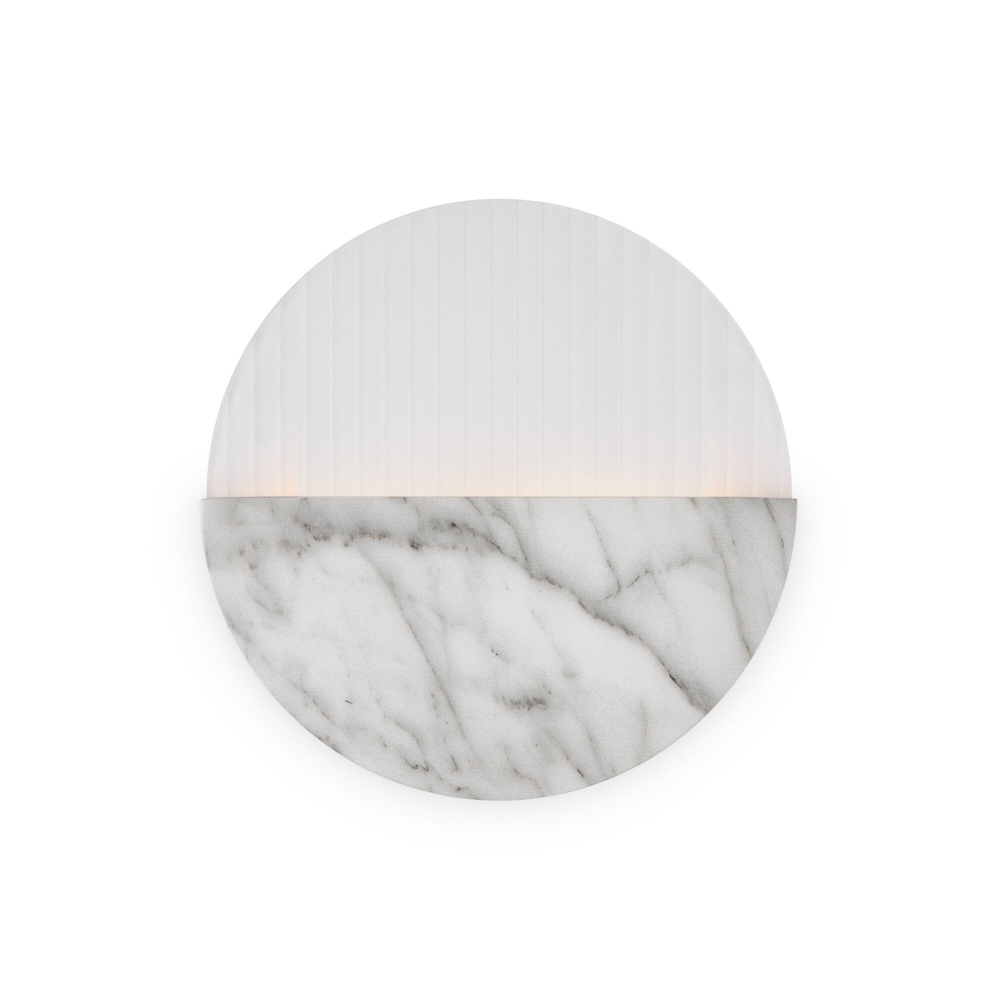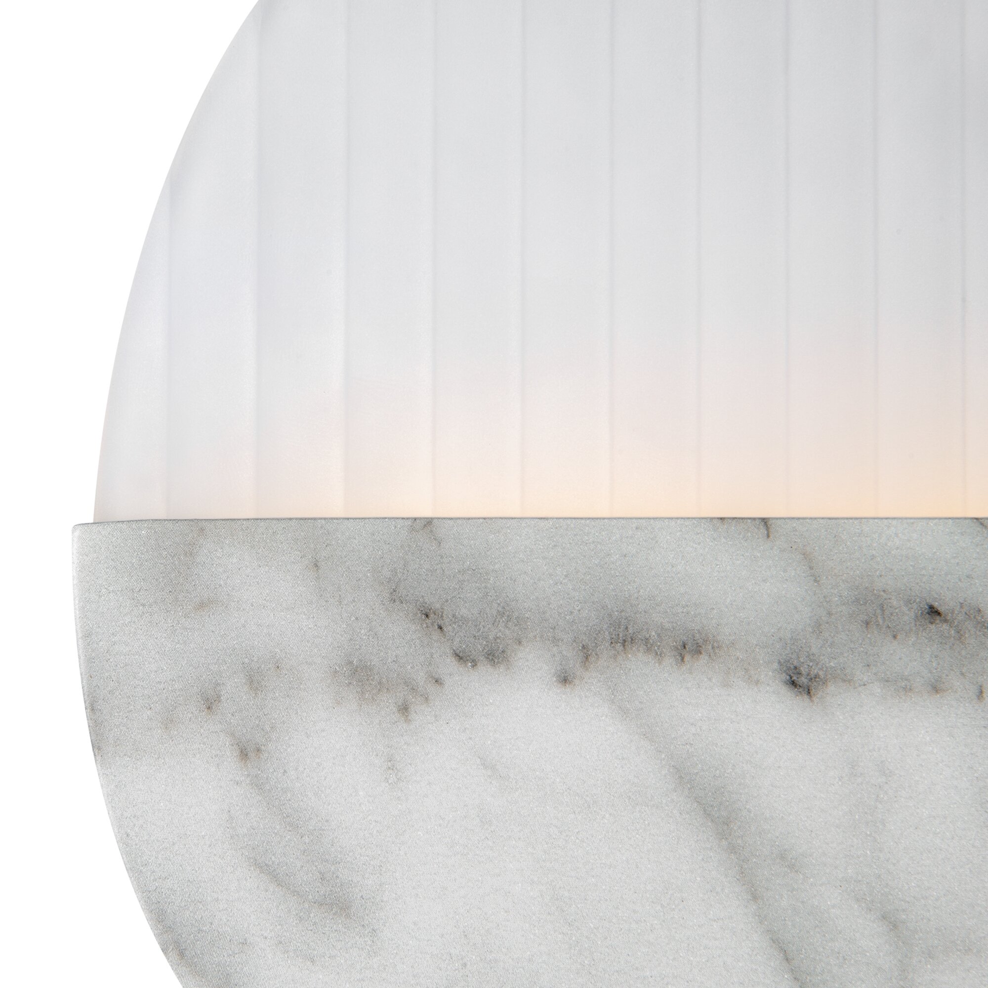 Матовая металлическая арматура, оттенки – латунь, мрамор. Рассеиватель двух видов: рифленое стекло и белый матовый акрил. Источник света - светодиодная лента, температура 3000К.