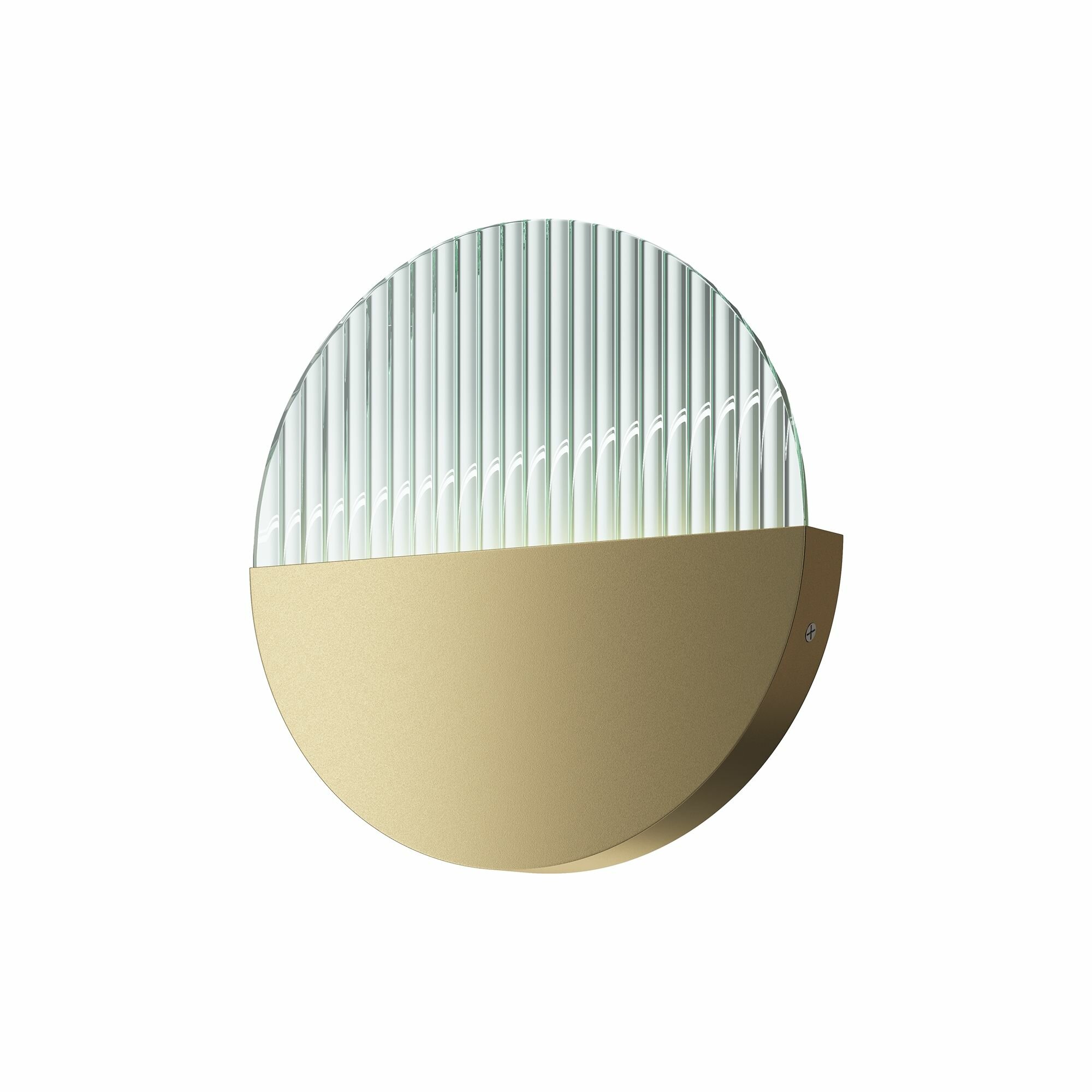 Матовая металлическая арматура, оттенки – латунь, мрамор. Рассеиватель двух видов: рифленое стекло и белый матовый акрил. Источник света - светодиодная лента, температура 3000К.