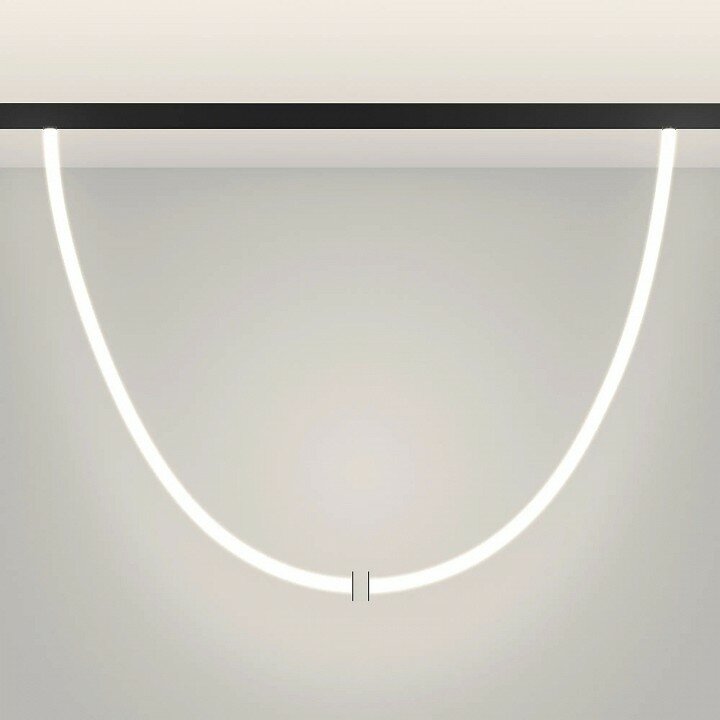 Светильник гибкий для магнитных треков серии ORIENT с управлением DALI. Мощность 70 Вт, св. поток 4550 лм, 65 лм/Вт, дневной 4000 K, CRI>90, угол 360°, напряжение питания 48 В. Матовый белый фигурный корпус из силикона с черными креплениями. Размер: диаметр 25 мм, длина 5000 мм. Монтаж на магнитный трек ORIENT. Адаптеры входят в комплект.