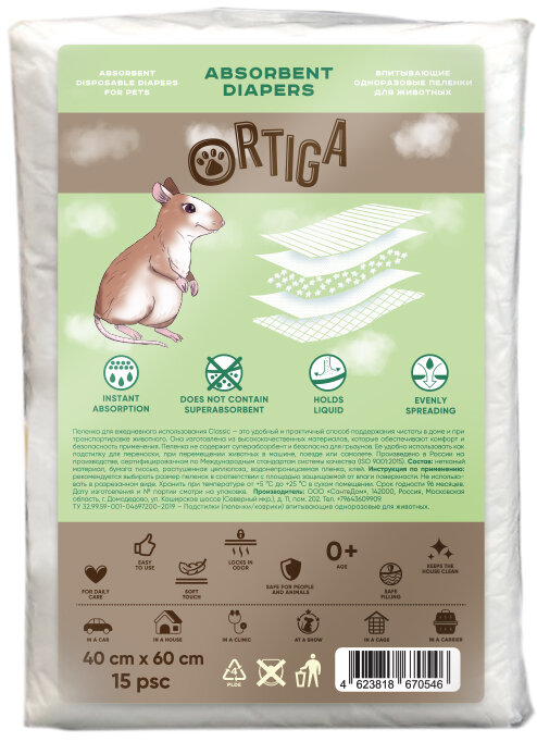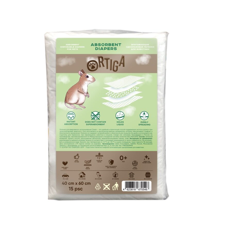 Ortiga пеленки впитывающие одноразовые Classic (40 х 60 см.) (15 шт.)