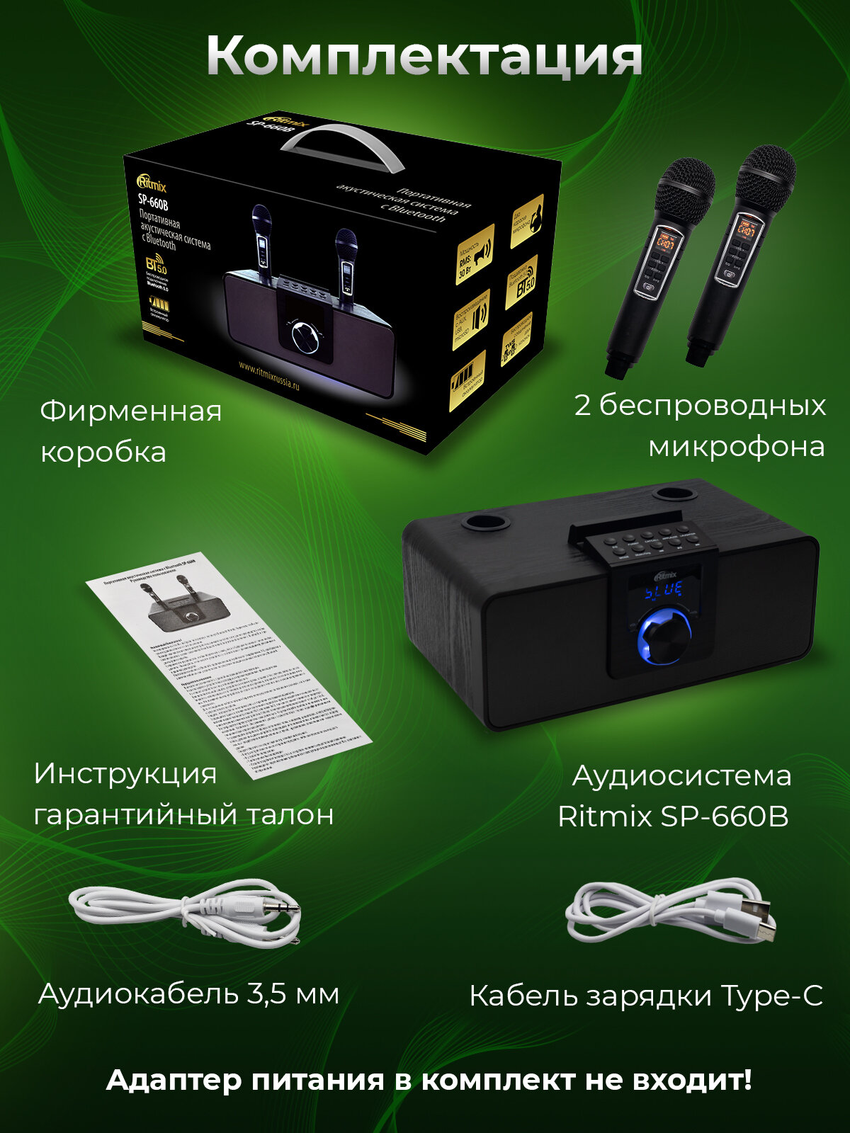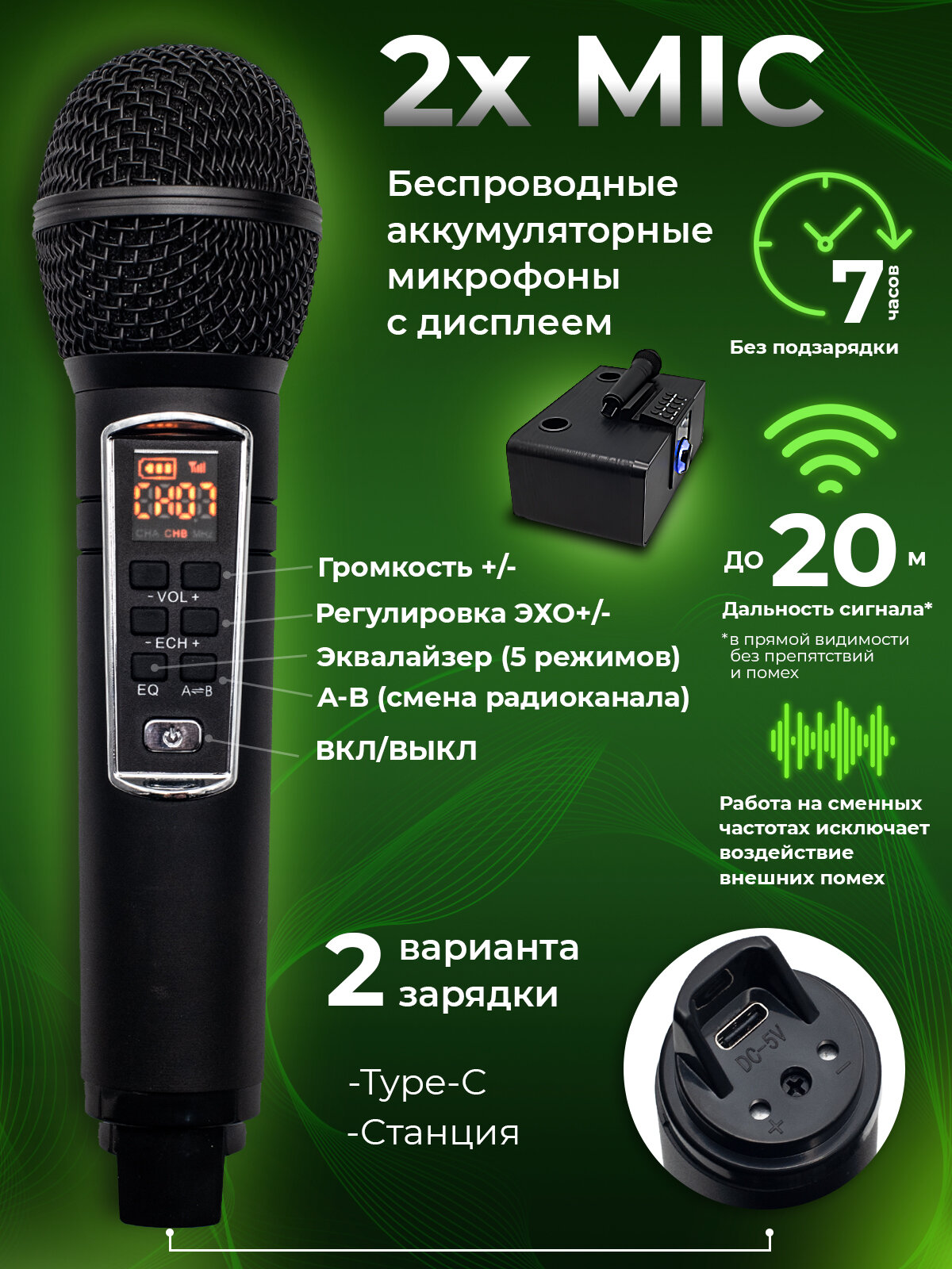 - Дальность работы микрофонов: до 20 метров