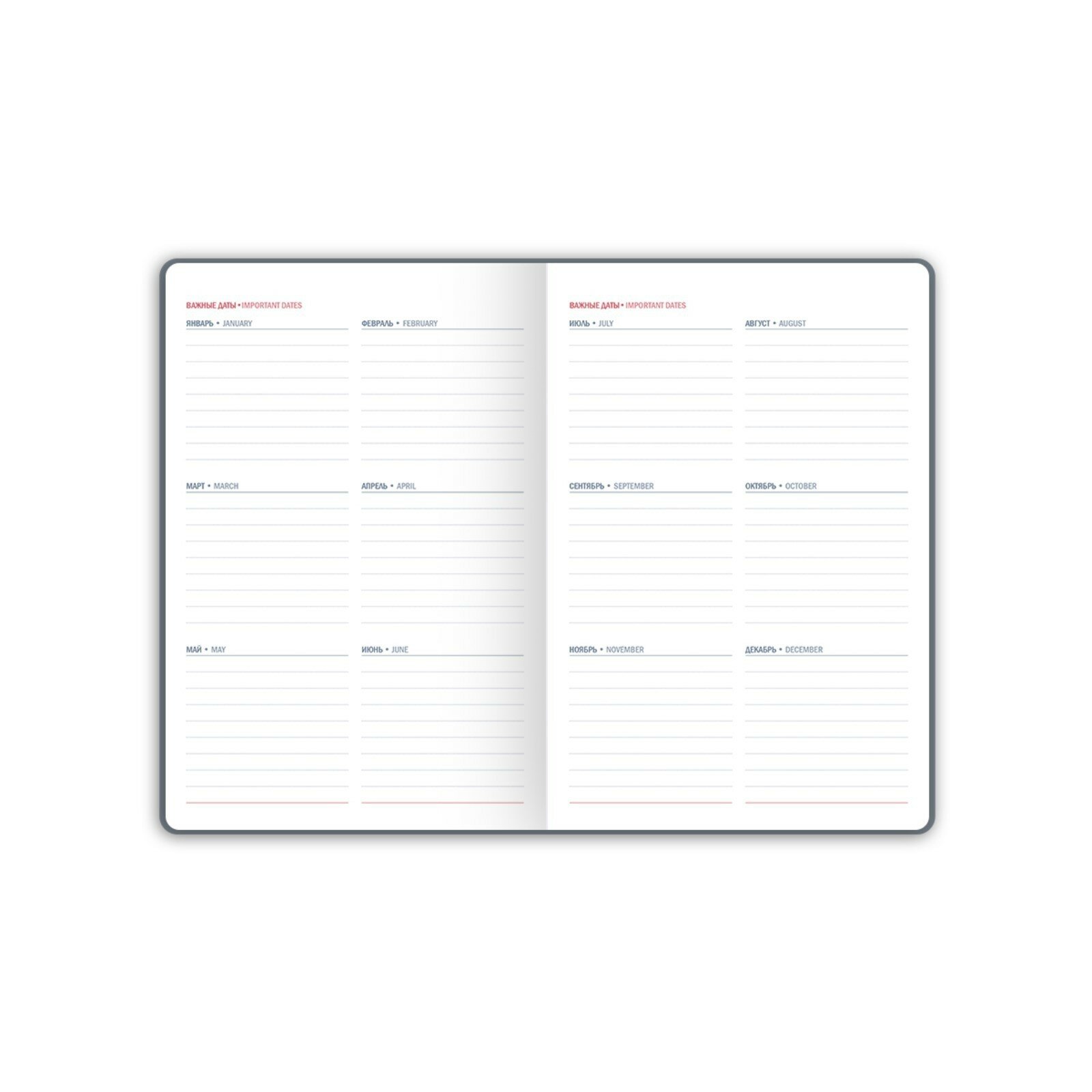 Ежедневник датированный А5(148х210мм), 176 листов. Обложка - твердый переплет, стык 2-х материалов, декорирован блинтовым тиснением. Внутренний блок - белый офет 80 гр/м2, ниткошвейный, скругленные углы, печать в две краски, линия. Одно ляссе. Индивидуальная ПЭТ упаковка.