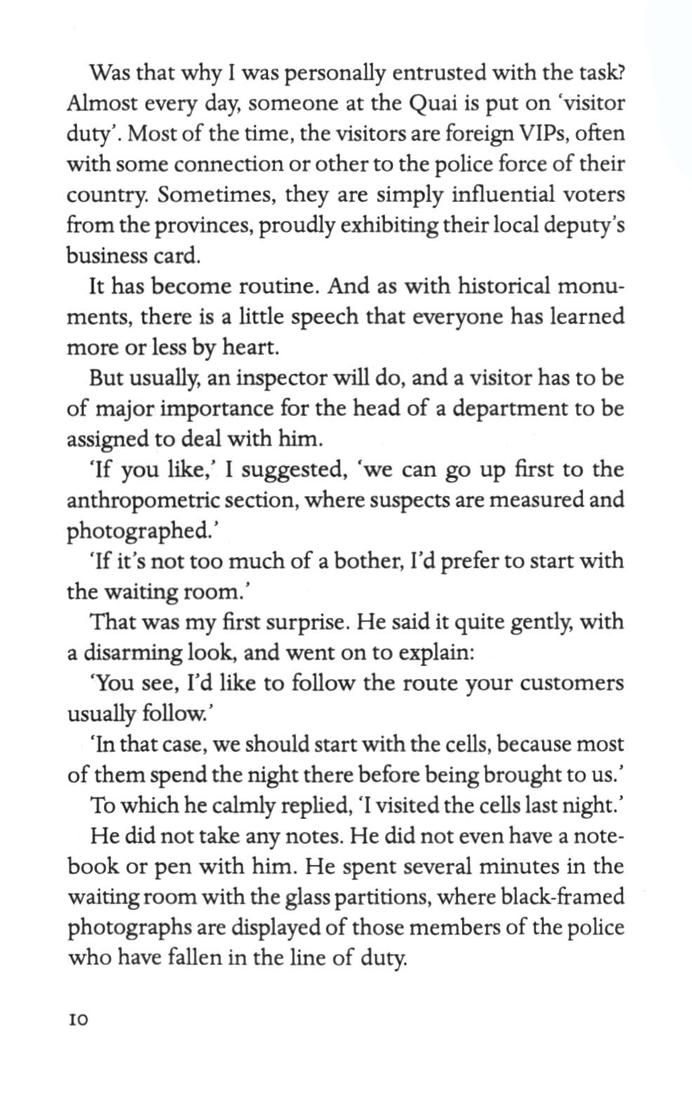 I can still see Simenon coming into my office the next day, pleased with himself, displaying even more self-confidence, if possible, than before, but nevertheless with a touch of anxiety in his eyes.'
