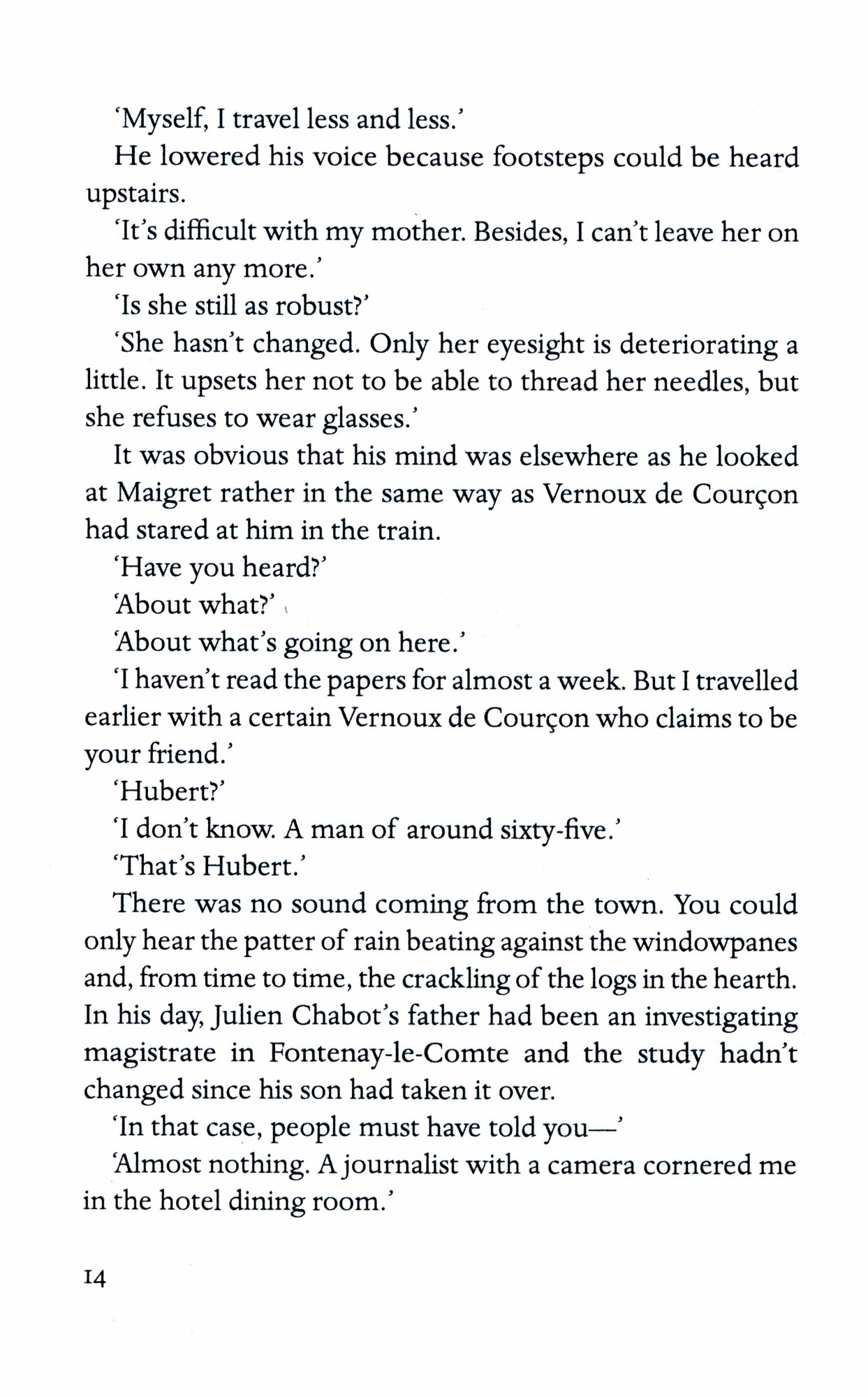 'This was natural. It is the same everywhere. Rarely, however, had Maigret had such a strong sense of a clique. In a small town like this, of course there are the worthies, who are few and who inevitably meet each other several times a day, even if it is only in the street.