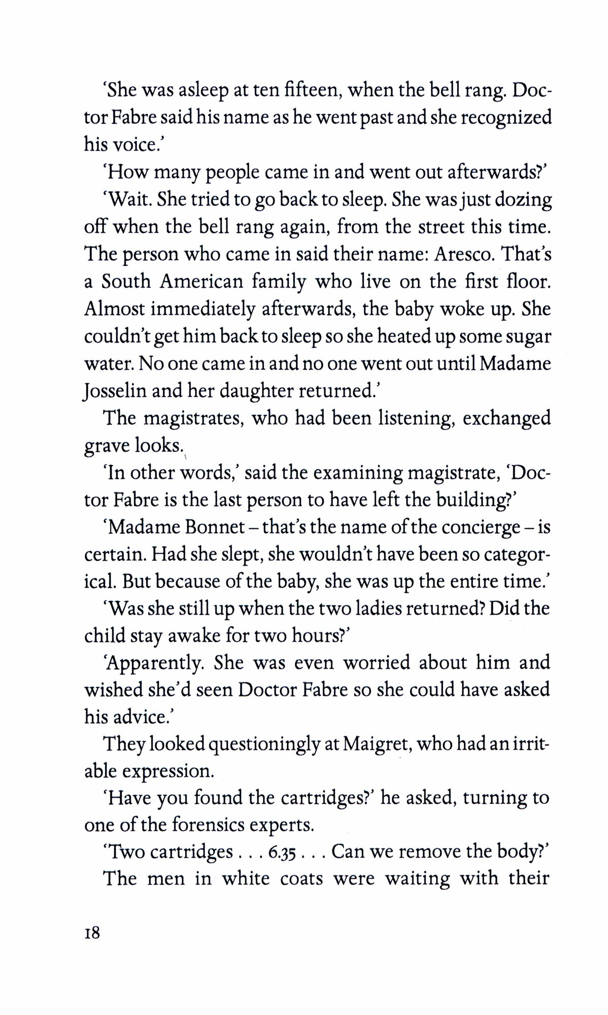 A retired manufacturer has been shot dead by his own pistol, last seen alive by his son-in-law. In this seemingly motiveless murder, Inspector Maigret must rely on his famous intuition to discover the truth.