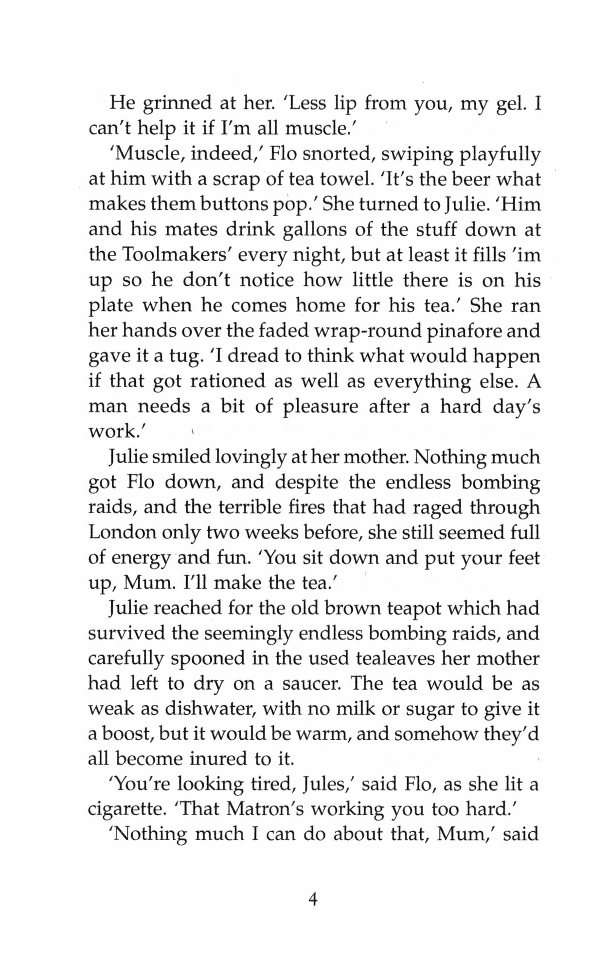 Julie Harris is working in London’s East End as a midwife when a bombing raid destroys her family and the house she grew up in. All she has left is her motherless baby nephew William.