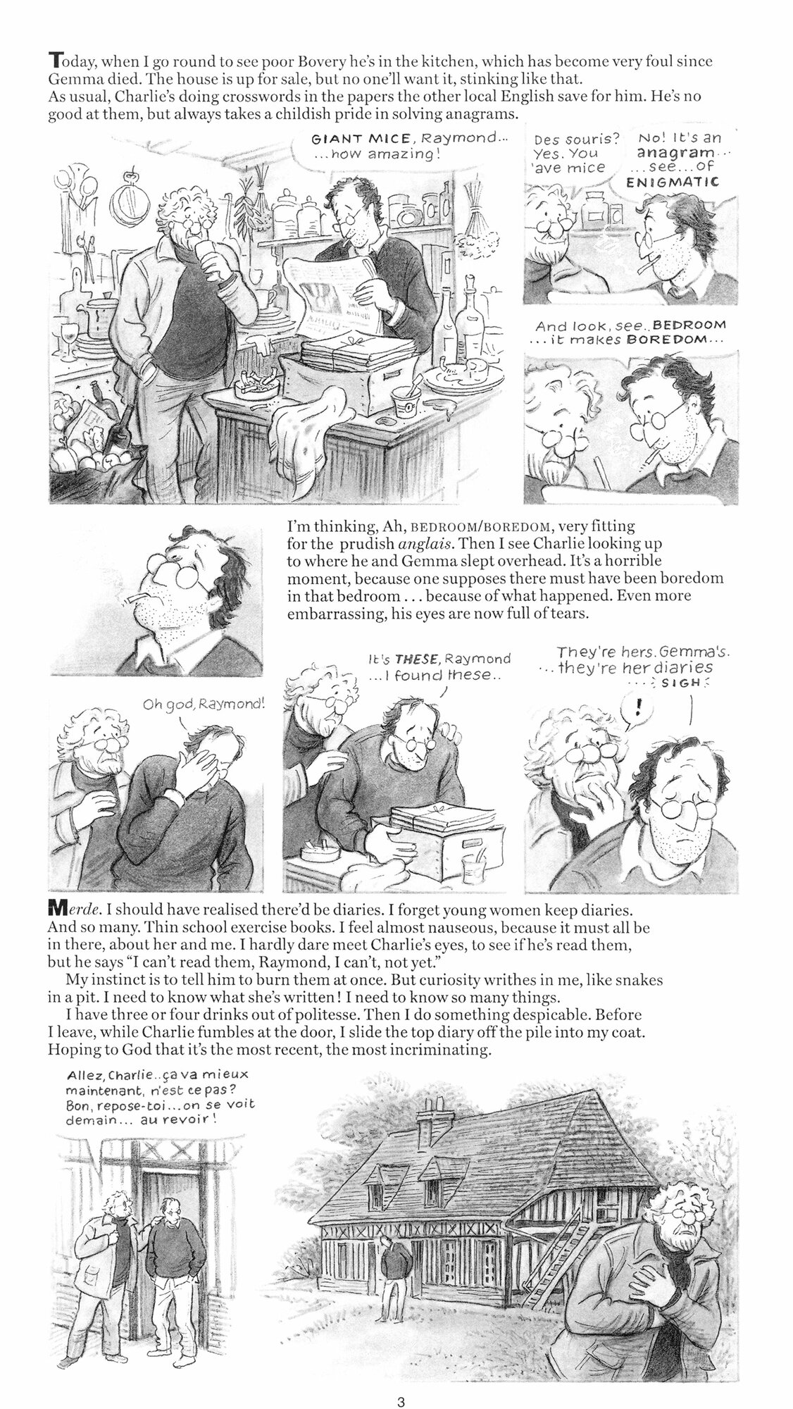 Is it a coincidence that Gemma Bovery has a name rather like Flaubert's notorious heroine? Is it by chance that, like Madame Bovary, Gemma is bored, adulterous, and a bad credit risk? Is she inevitably doomed? These questions consume Gemma's neighbour, the intellectual baker, Joubert. Denying voyeurism, but nevertheless noting every change in the fit of her jeans, every addition to Gemma's wardrobe, her love-bites and lovers, Joubert, with the help of the heroine's diaries, follows her path towards ruin. Adultery and its consequences. Disappointment and deception. The English in France. Fat and slim. Then and now.
