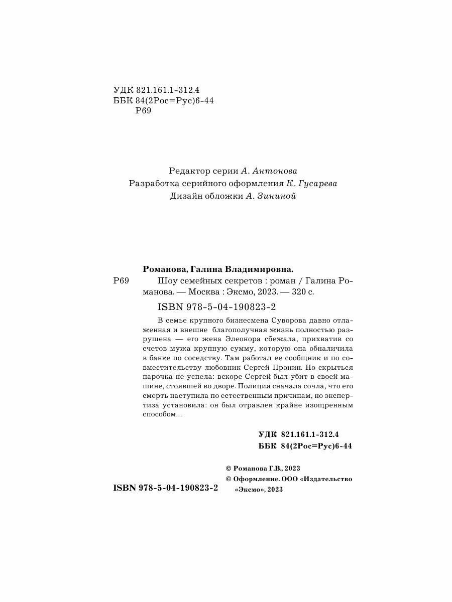 Книга: Шоу семейных секретов (Романова Галина Владимировна); ООО "Издательство "Эксмо", 2023
