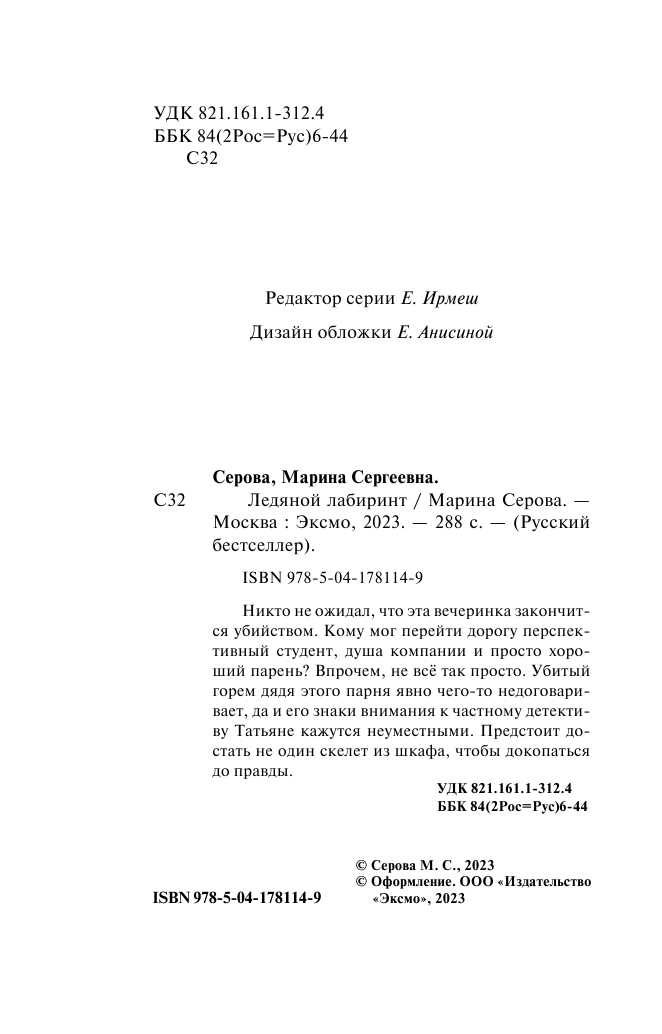 Книга: Ледяной лабиринт (Серова Марина Сергеевна); ООО "Издательство "Эксмо", 2023