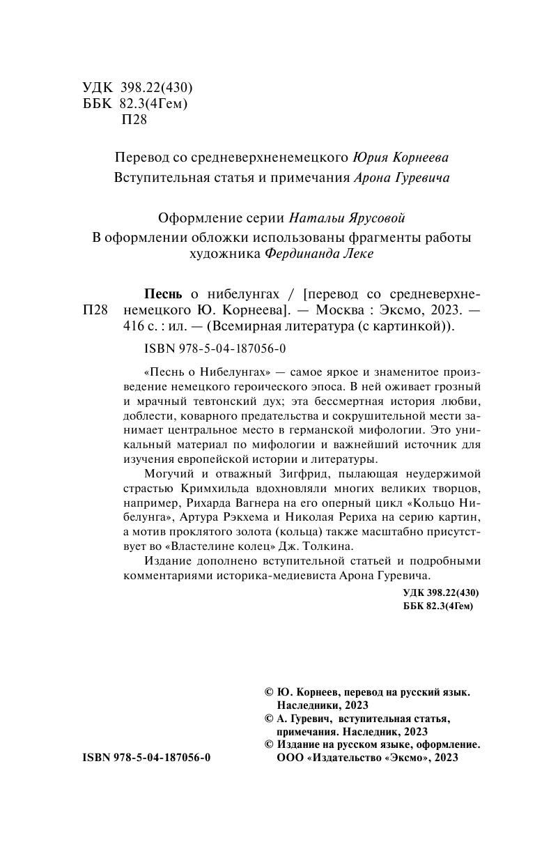Книга: Песнь о нибелунгах (Емельянова Е. (редактор)); Эксмо, Редакция 1, 2023