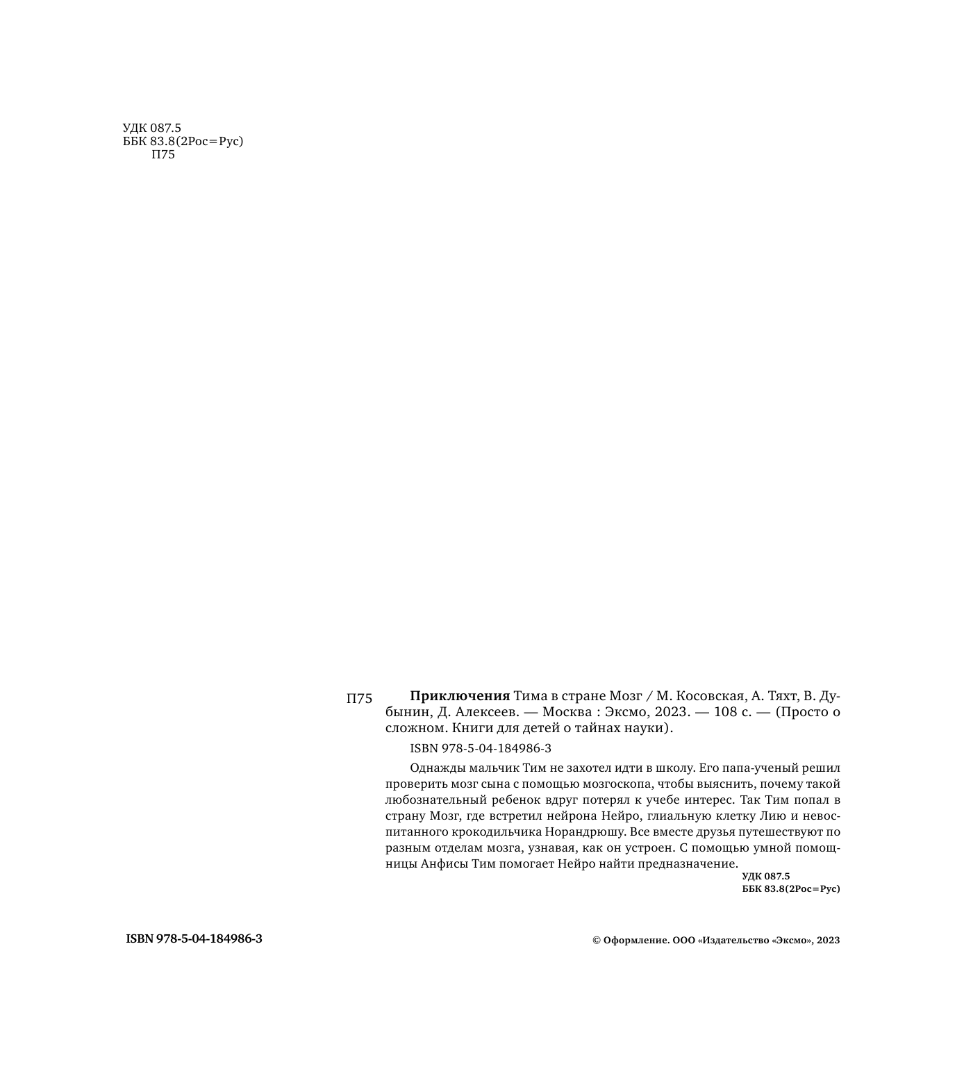 Приключения Тима в стране Мозг (Тяхт Алла, Дубынин Вячеслав Альбертович, Косовская Мария Геннадьевна, Алексеев Дмитрий Глебович); ООО "Издательство "Эксмо", 2023
