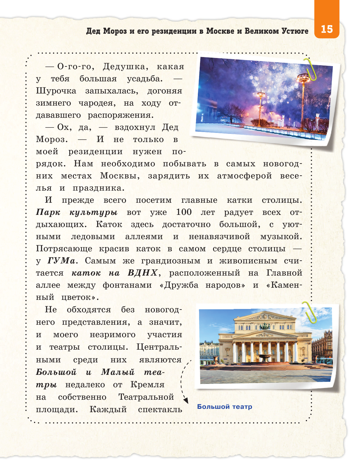 Книга очень понравилась! Покупали ребёнку, но зачитываемся всей семьёй, увлекательно и интересно, создаёт новогоднее настроение! Дочке нравится, мы с мужем узнаем что-то новое. Самим захотелось побывать на родине Деда Мороза и вообще отправиться в путешествие по стране.