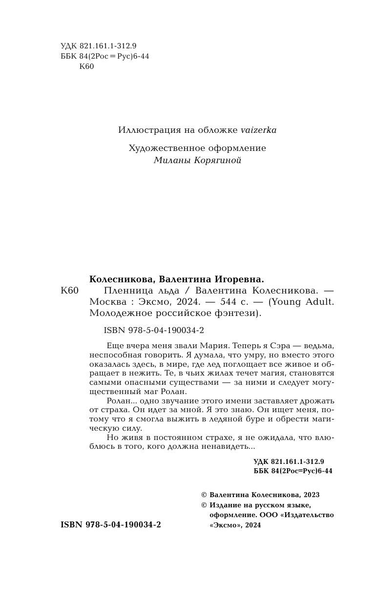 Книга: Пленница льда (Колесникова Валентина Игоревна); ООО "Издательство "Эксмо", 2023