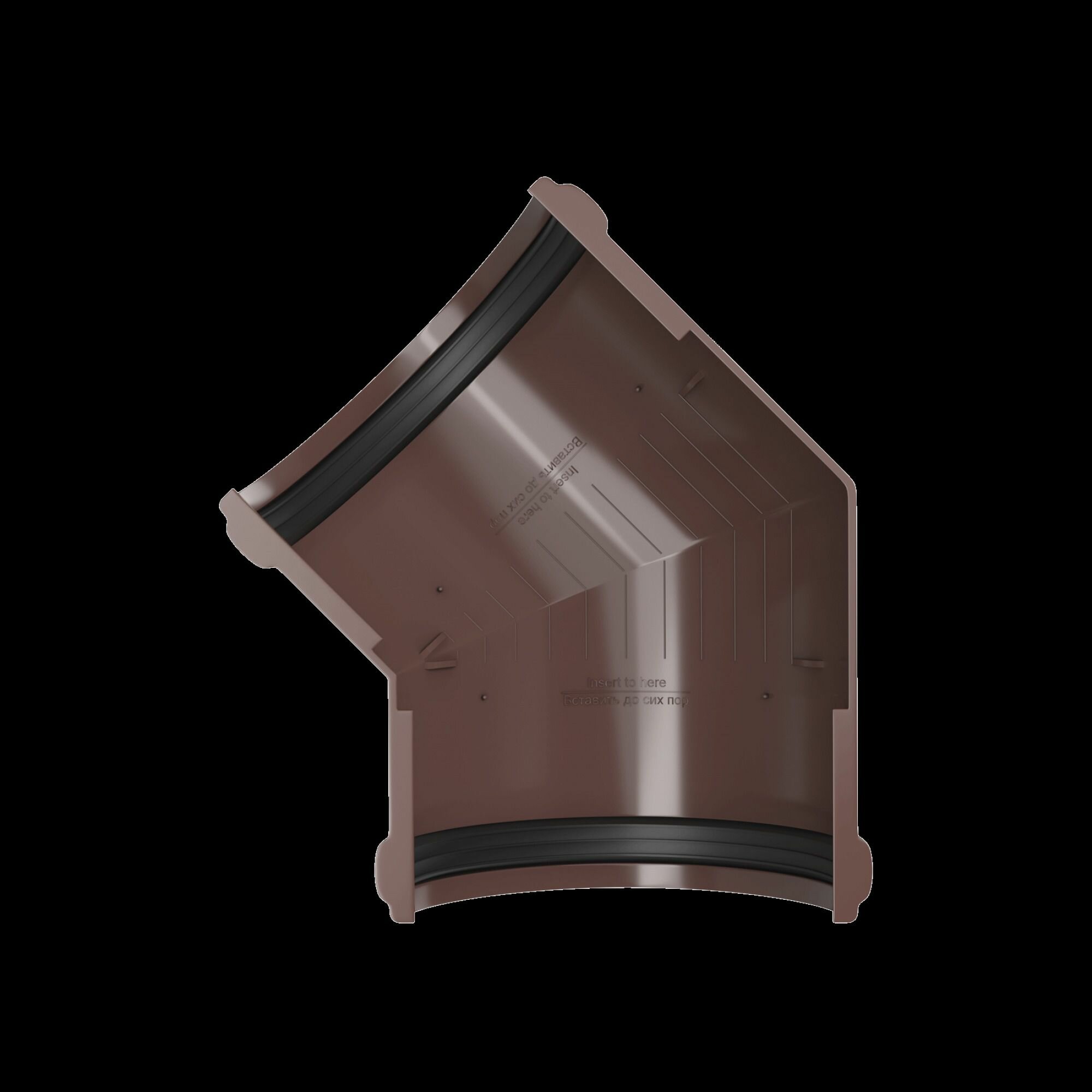 Угол желоба ТЕХНОНИКОЛЬ Architect - элемент внешней водосточной системы, который используется для изменения направления потока дождевых или талых вод и соединения двух пластиковых желобов диаметром 125 мм под углом 135 градусов.
