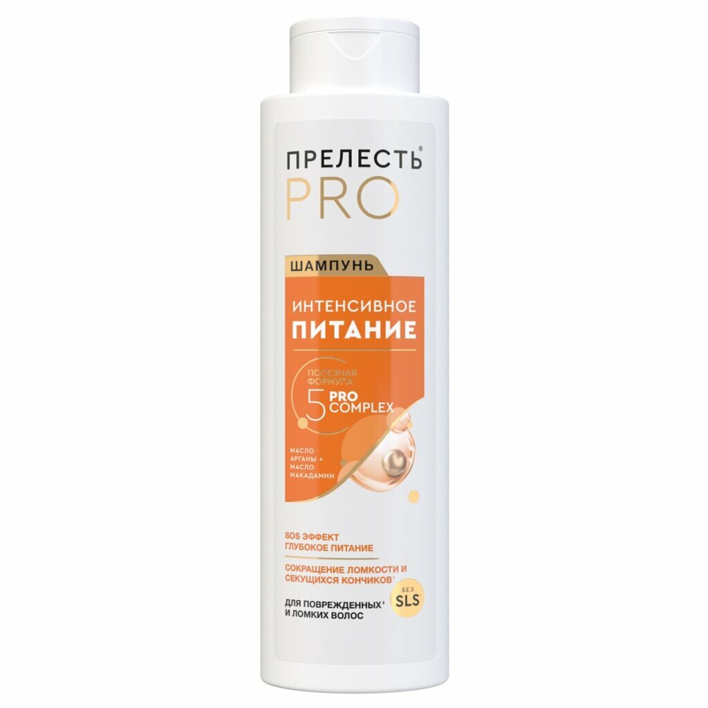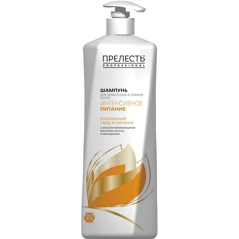 Шампунь для волос Прелесть Professional "Интенсивное питание" для окрашенных волос включает в себя комплекс, обогащенный натуральными маслами арганы и макадамии, провитамином B5 и витамином B3. Компоненты бережно ухаживают за волосами, увлажняют и делают их сильными и объемными. Подходит для окрашенных и ломких волос. Шампунь мягко очищает волосы и кожу головы. Выравнивает и разглаживает поверхность волоса. Придает интенсивный блеск. Облегчает расчесывание. Предотвращает вымывание цвета. Не содержит SLS, парабены, силиконы, красители в своем составе. Продукты Прелесть Professional созданы на основе прогрессивных научных разработок R&D центра "Арнест" и являются салонными профессиональными средствами для использования в домашних условиях. В основе средств по уходу за волосами Прелесть Professional уникальный комплекс витаминов и натуральных экстрактов CareProFactor, который восстанавливает и защищает волосы.