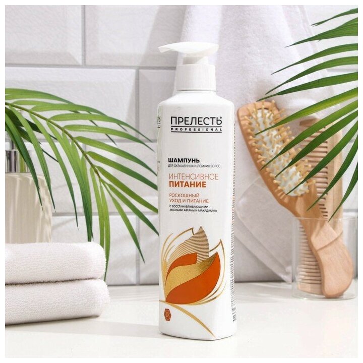 Шампунь для волос Прелесть Professional "Интенсивное питание" для окрашенных волос включает в себя комплекс, обогащенный натуральными маслами арганы и макадамии, провитамином B5 и витамином B3. Компоненты бережно ухаживают за волосами, увлажняют и делают их сильными и объемными. Подходит для окрашенных и ломких волос. Шампунь мягко очищает волосы и кожу головы. Выравнивает и разглаживает поверхность волоса. Придает интенсивный блеск. Облегчает расчесывание. Предотвращает вымывание цвета. Не содержит SLS, парабены, силиконы, красители в своем составе. Продукты Прелесть Professional созданы на основе прогрессивных научных разработок R&D центра "Арнест" и являются салонными профессиональными средствами для использования в домашних условиях. В основе средств по уходу за волосами Прелесть Professional уникальный комплекс витаминов и натуральных экстрактов CareProFactor, который восстанавливает и защищает волосы.