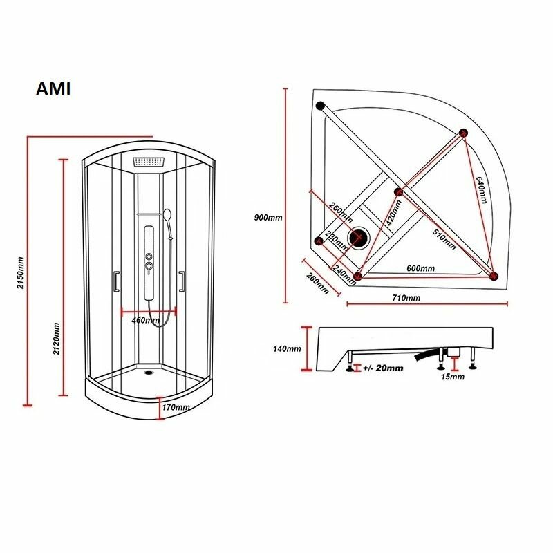 Модель: 90x90 AMI без гидромассажа