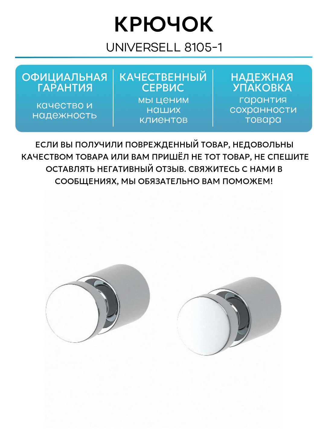 Крючок 3 см Universell Artwelle 8105-1: стильный и функциональный аксессуарКрючок 3 см Universell Artwelle 8105-1 представляет собой стильный и функциональный аксессуар для ванной комнаты. Изготовленный из высококачественной латуни, этот крючок обладает высокой прочностью и коррозионной стойкостью, что делает его долговечным и надежным в использовании.Крючок имеет серебристый цвет и круглую форму, что придает ему современный и элегантный вид. Размеры крючка составляют 3 см в длину, 1.6 см в ширину и 1.6 см в высоту, что позволяет разместить на нем различные предметы, такие как полотенца, халаты или одежду.В комплекте идут два крючка, каждый из которых оснащен одним крючком на вешалке. Крючки крепятся к стене с помощью шурупов, что обеспечивает надежное и прочное крепление.Крючок Universell Artwelle 8105-1 является частью линейки Universell, которая включает в себя различные аксессуары для ванной комнаты.В комплект поставки входят инструкция и крепеж, что облегчает процесс установки и использования крючка.Выбирая крючок 3 см Universell Artwelle 8105-1, вы получаете стильный, функциональный и надежный аксессуар для вашей ванной комнаты, который будет служить вам долгое время.