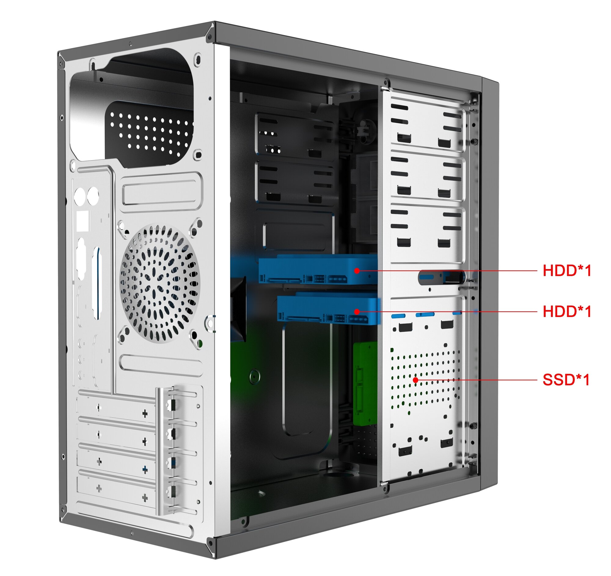 Компьютерный корпус обладает прочной структурой, которая надежно фиксирует компьютерные комплектующие защищает их от внешних физических воздействий.