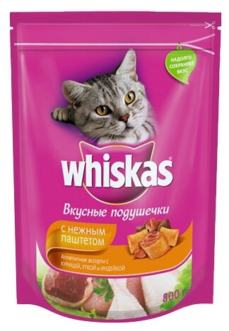 Whiskas Вкусные подушечки ассорти с курицей уткой и индейкой 800 г