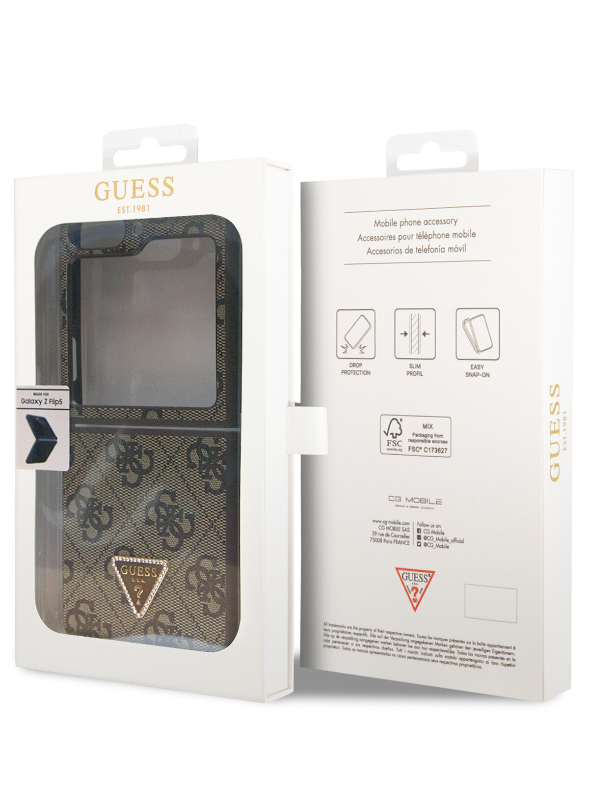 Чехол-накладка бренда Guess обеспечит надежную защиту для вашего Samsung Galaxy Z Flip5. Изделие изготовлено из искусственной кожи, нанесенной на прочную пластиковую основу в сочетании с силиконовым бампером. Кожаная часть чехла декорирована монограммой бренда и металлическим логотипом со стразами. Кейс состоит из двух частей соединенных между собой металлическими креплениями и плотно облегает корпус телефона, а его конструкция отлично защищает устройство от повреждений, царапин и сколов, которые неизбежны в процессе ежедневной эксплуатации. Все отверстия для разъемов, динамика и камеры выполнены точно и аккуратно, а боковые клавиши защищены заглушками, интегрированными в чехол - это защищает их от попадания грязи, пыли и воды. Поставляется в оригинальной подарочной упаковке.