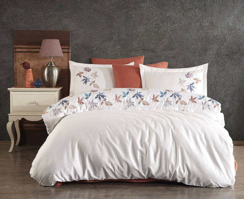 Комплектация: Евро, см: Пододеяльник 200*220 — 1 шт, Простыня 240*260 — 1 шт, Наволочка 50*70 — 4 шт.Комплект постельного белья из высококачественного сатина (100% хлопок) с нежной растительной вышивкой. Бархатистая мягкая ткань с эффектом глянца украсит любую спальню, ведь в сатине гармонично объединены элегантность шелка и практичность хлопка! Гладкая шелковистая с лицевой стороны и матовая плотная с изнанки придает особый комфорт во время сна.