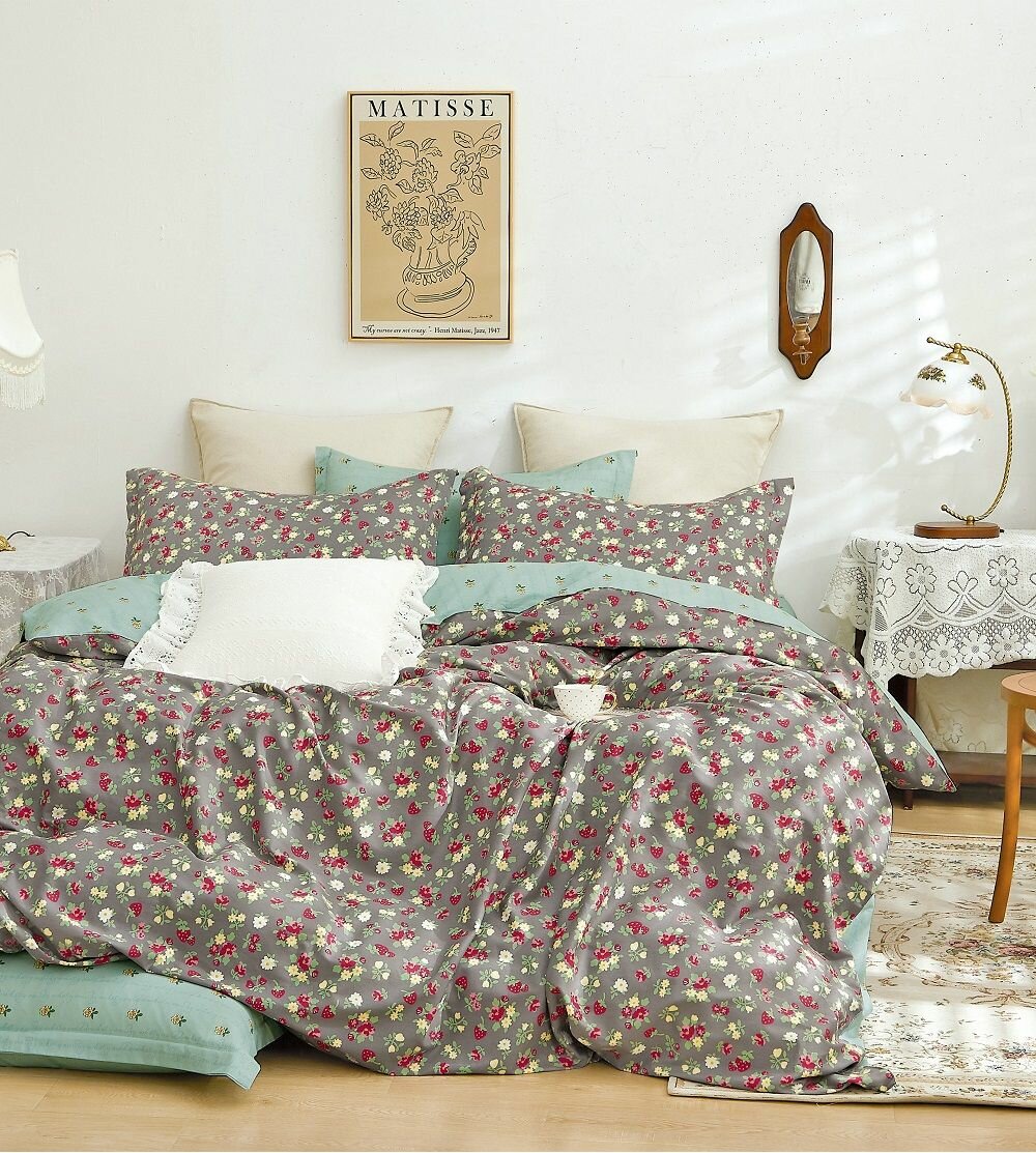 Постельное белье Клубника цвет: серый зеленый красный (2 спал.) Narcissa (nas944887)