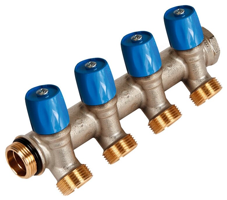 Коллектор HENCO VBS с синими вентилями 1"НР под евроконус 1" - 4xEK (VBS060504-BL)