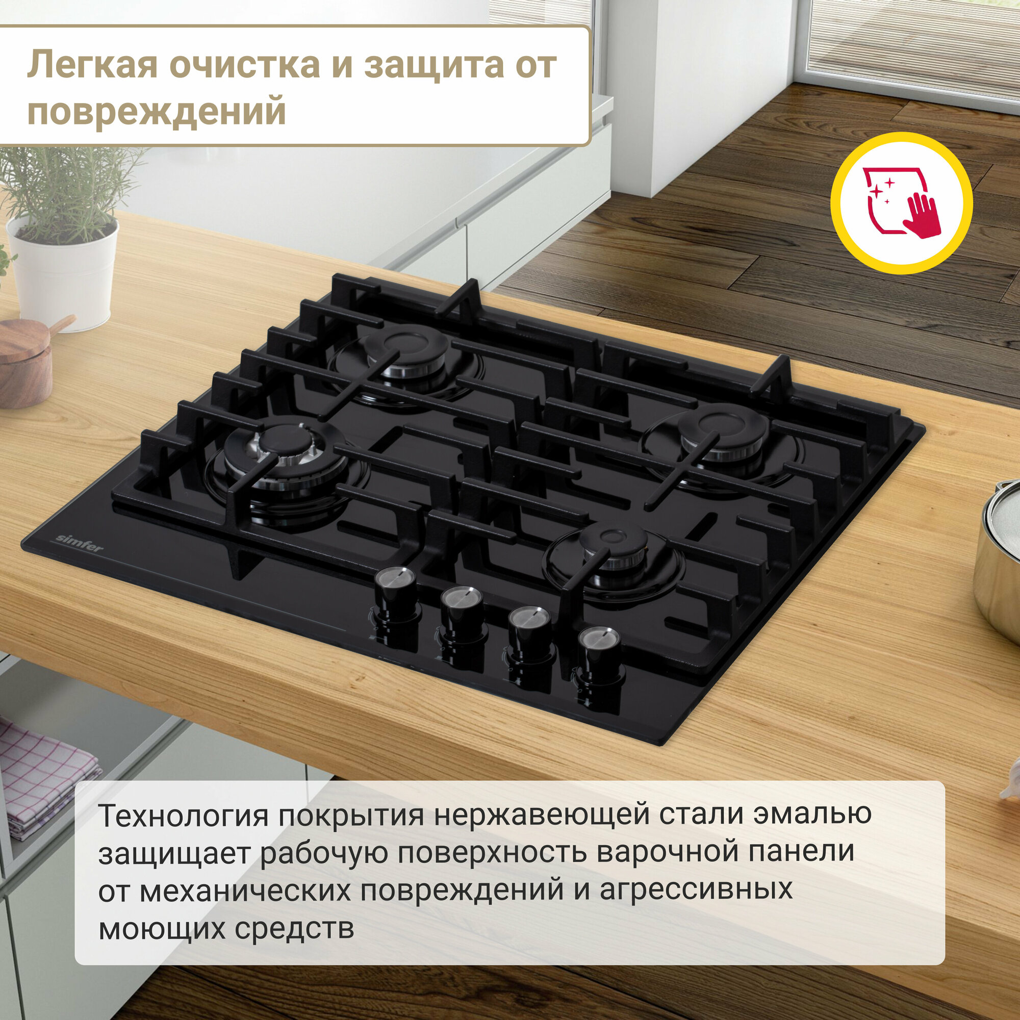 Сервис сравнения цен СкидкаГИД предлагает сравнить цены на товар «Газовая варочная поверхность Simfer H60H41S570 (газ-контроль WOK конфорка чугунные решетки черное стекло)»