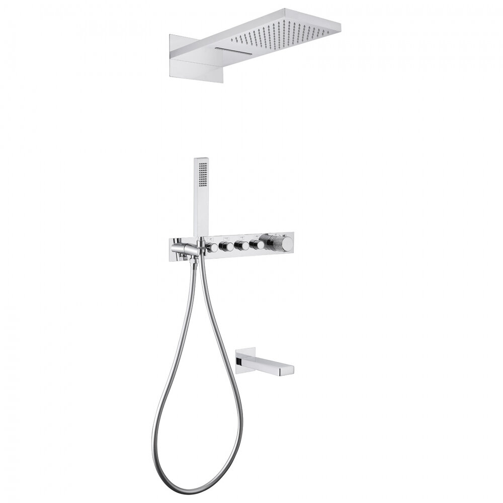 Встраиваемая душевая система Abber Rund AF8753 хром, с термостатом, с изливом для ванны