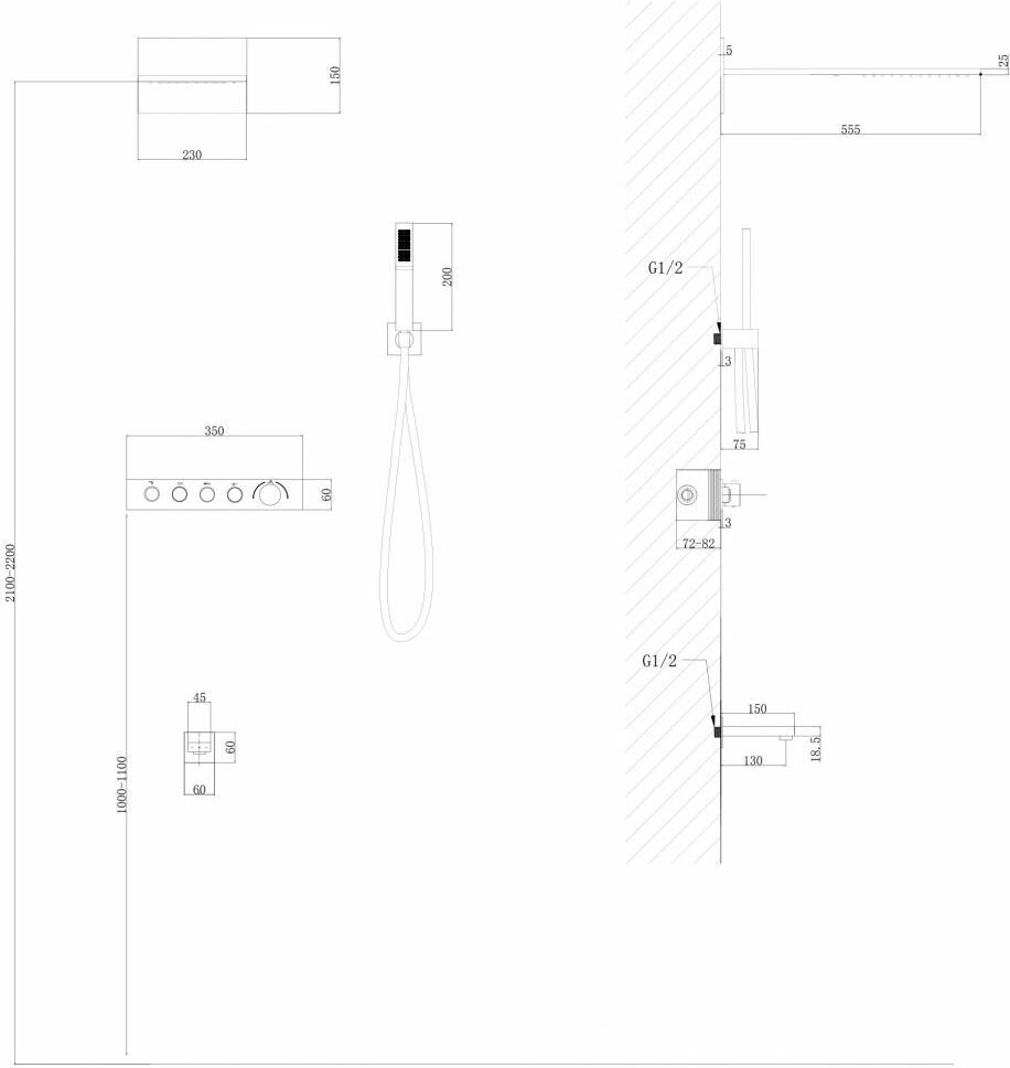 | Габариты верхнего душа | 555 |