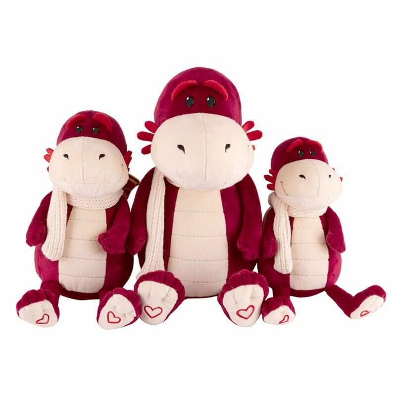 У Патрика – уникальный дизайн: благородный бордовый цвет, золотистые крылышки и лапки с вышитыми сердечками хорошо подойдут для того, чтобы сделать кому-то сюрприз и порадовать своей любовью и красивым подарком — мягкой игрушкой из экологичных материалов. Символ года 2024 желает, чтобы вы получали от родных и друзей подарки, которые вам нужны.