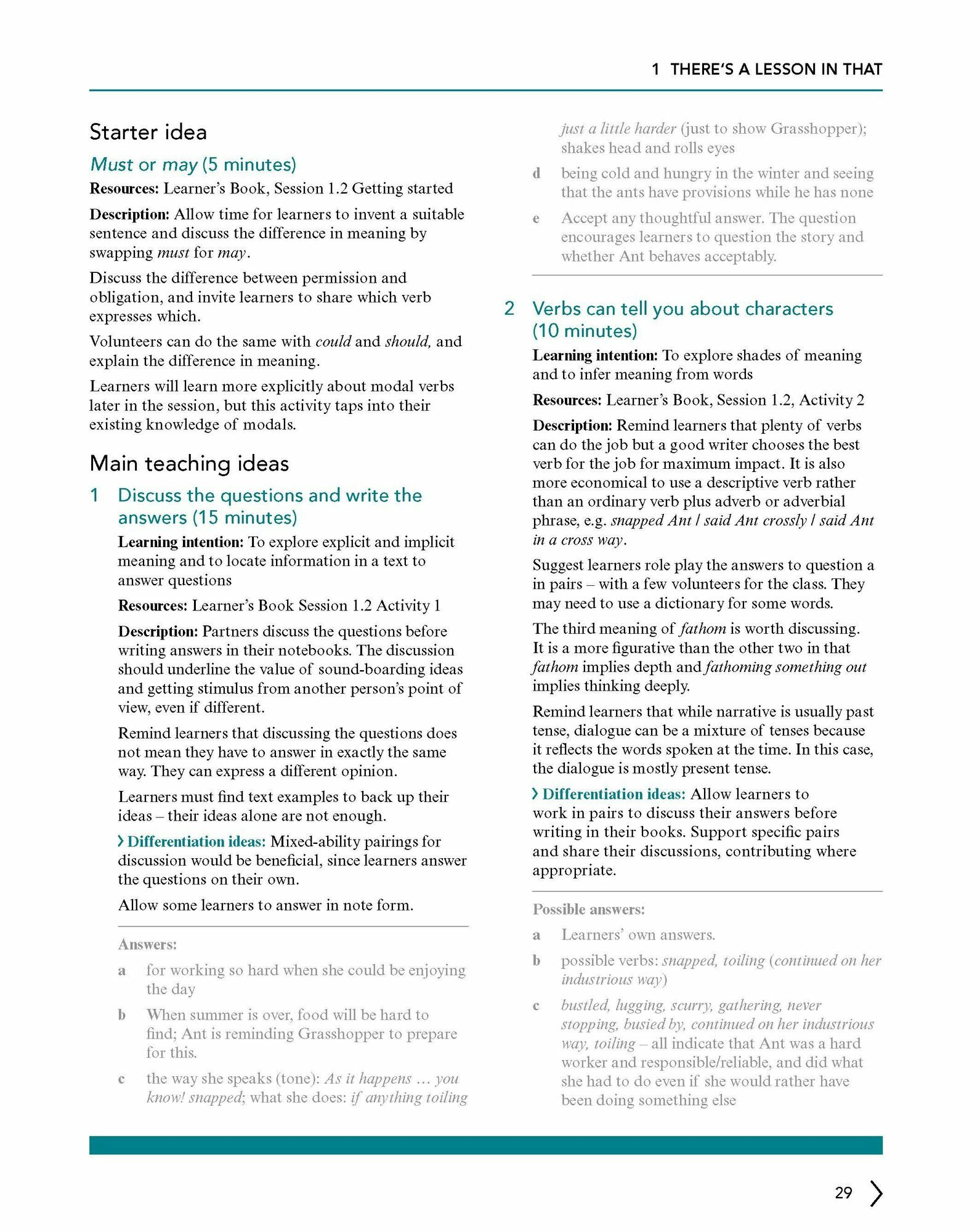 Пособие содержит все, что нужно для планирования и проведения уроков, в одном месте! Учителя найдут начальные и пленарные занятия, идеи дополнительных уроков, ответы к заданиям из учебника и рабочей тетради, предложения по языковой поддержке, в также четкие идеи оценки и дифференциации, которые помогут учителю раскрыть потенциал каждого учащегося.