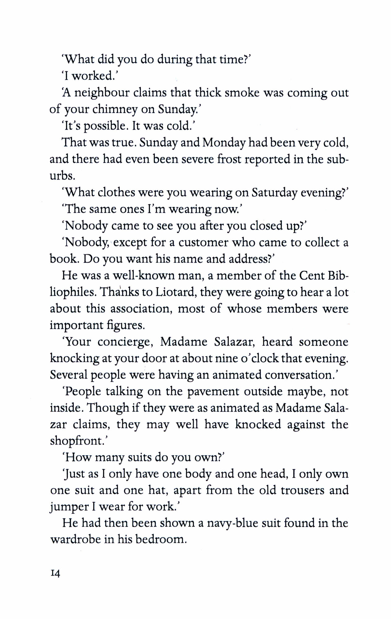 When he got to his door, he was surprised not to hear any noise in the kitchen and not to smell any food. He went in, crossed the dining room, where the table had not been laid, and at last saw Madame Maigret, in her slip, busy taking off her stockings. This was so unlike her that he could find nothing to say, and when she saw him standing there wide-eyed, she burst out laughing.