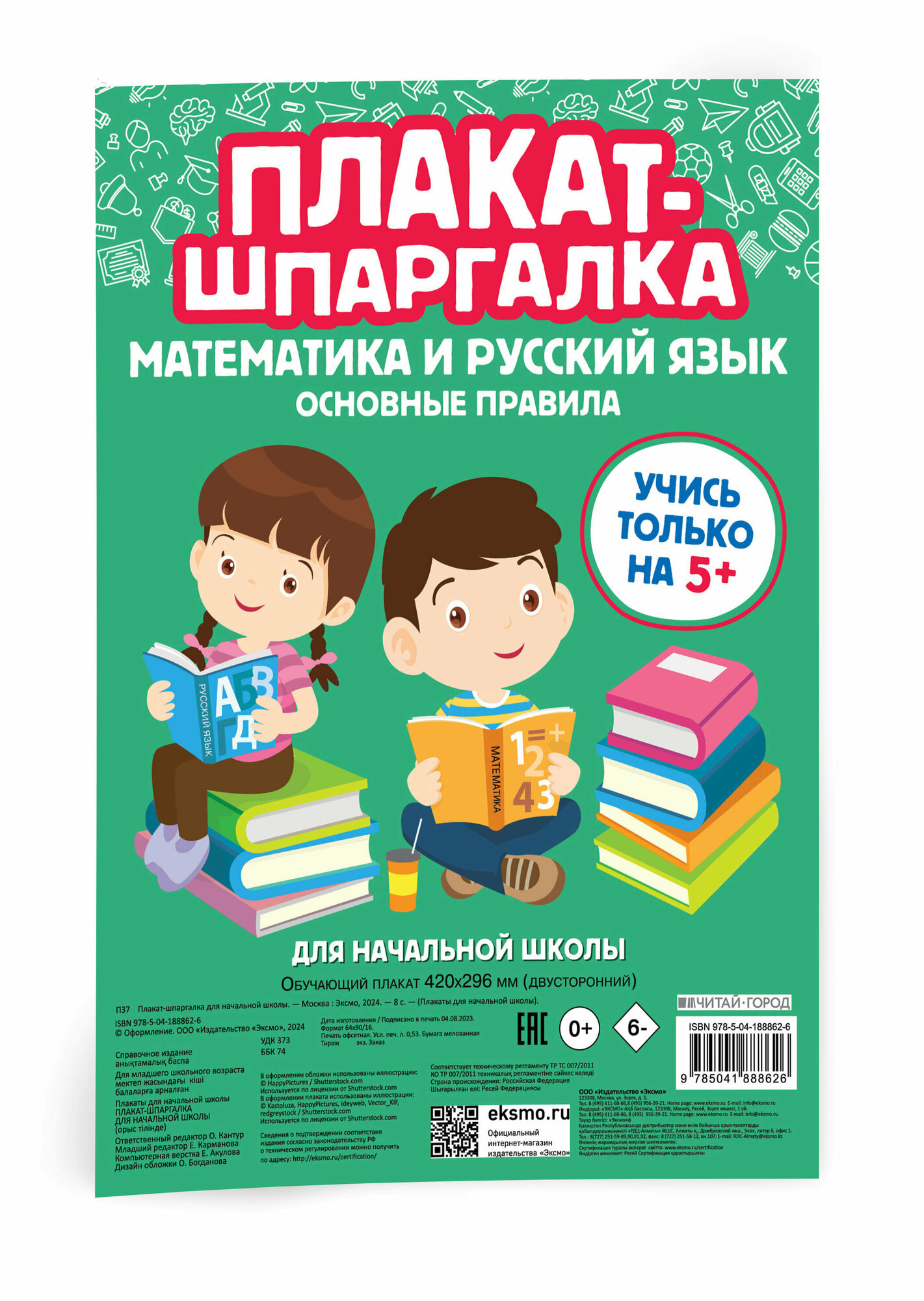 Красочный двусторонний плакат станет для первоклассника отличным помощником в освоении правил математики и русского языка, которые ему предстоит изучить в начальной школе. Важно держать их перед глазами во время выполнения домашних заданий для лучшего запоминания. Удобный формат позволит разместить плакат на стене перед столом или под специальным прозрачным покрытием на рабочем столе. Изучив правила на одной стороне плаката на первом этапе обучения в школе, ребёнок может перевернуть пособие и продолжить изучать учебный материал. Таким образом, плакат будет надежным спутником ученика во время всего обучения в начальной школе. Материал представлен в виде наглядных таблиц и схем и полностью соответствует ФГОС. Яркая подача и забавные персонажи, сопровождающие учебный материал, помогут запомнить его намного быстрее. Обучающий плакат поможет ребёнку быстрее запомнить основные правила, а также экономить время, выполняя домашние задания и готовясь к урокам.