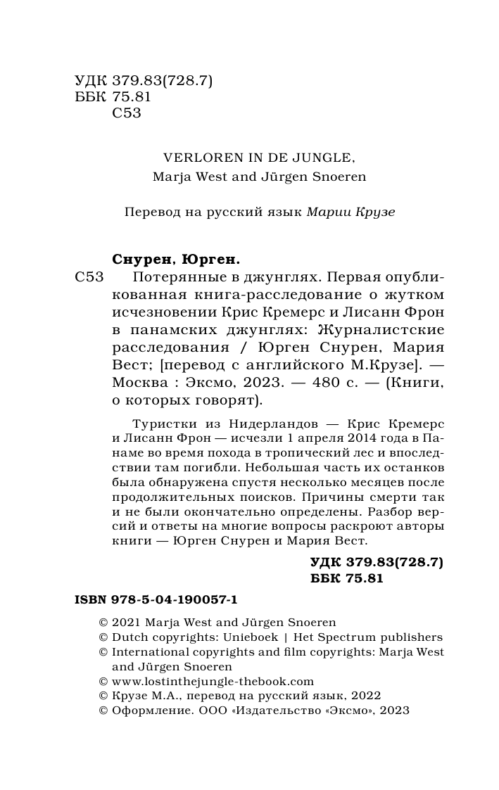 Потерянные в джунглях. Первая опубликованная книга-расследование о жутком исчезновении Крис Кремерс и Лисанн Фрон в панамских джунглях (Снурен Юрген, Вест Мария); ООО "Издательство "Эксмо", 2023
