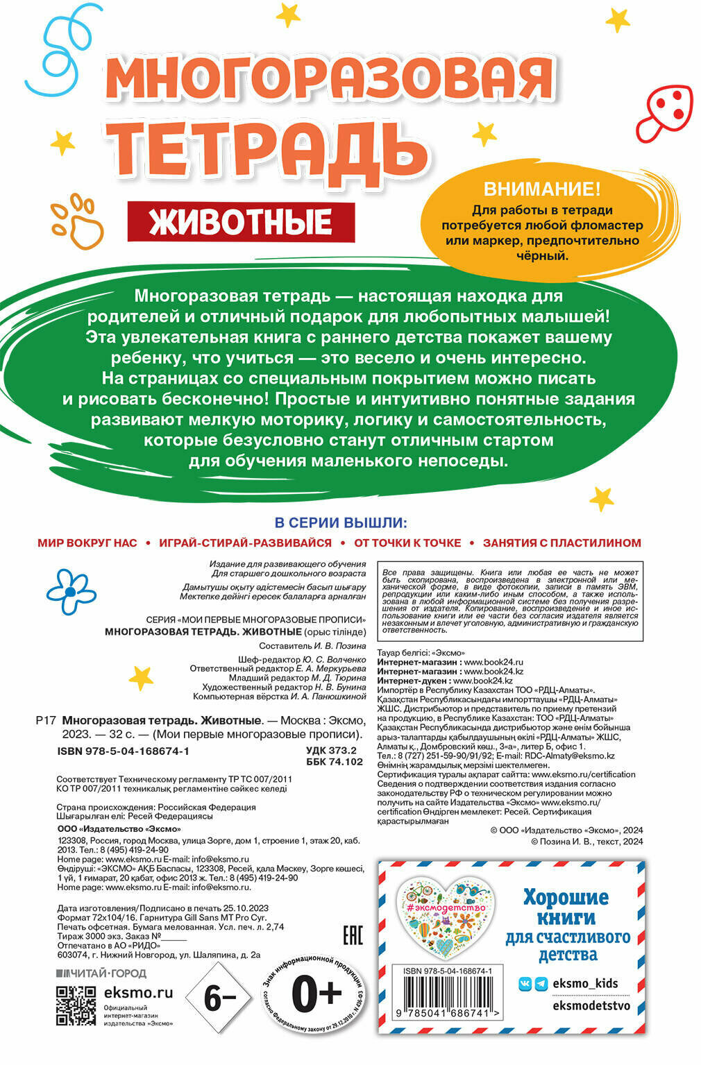 Многоразовая тетрадь. Животные (Позина И.В.); ООО "Издательство "Эксмо", 2023