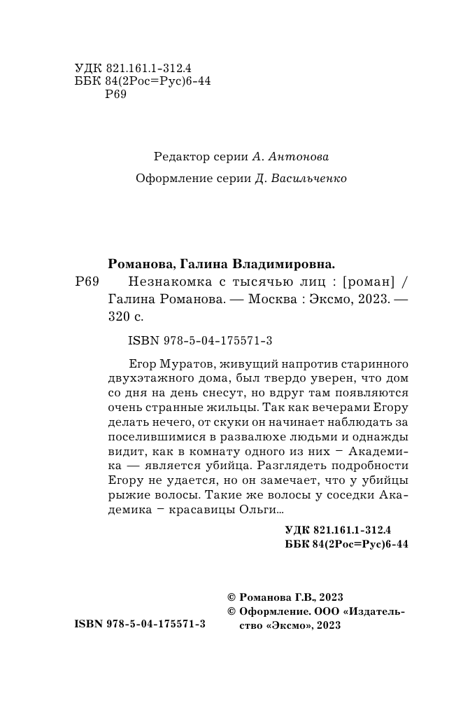 Книга: Незнакомка с тысячью лиц (Романова Галина Владимировна); ООО "Издательство "Эксмо", 2023