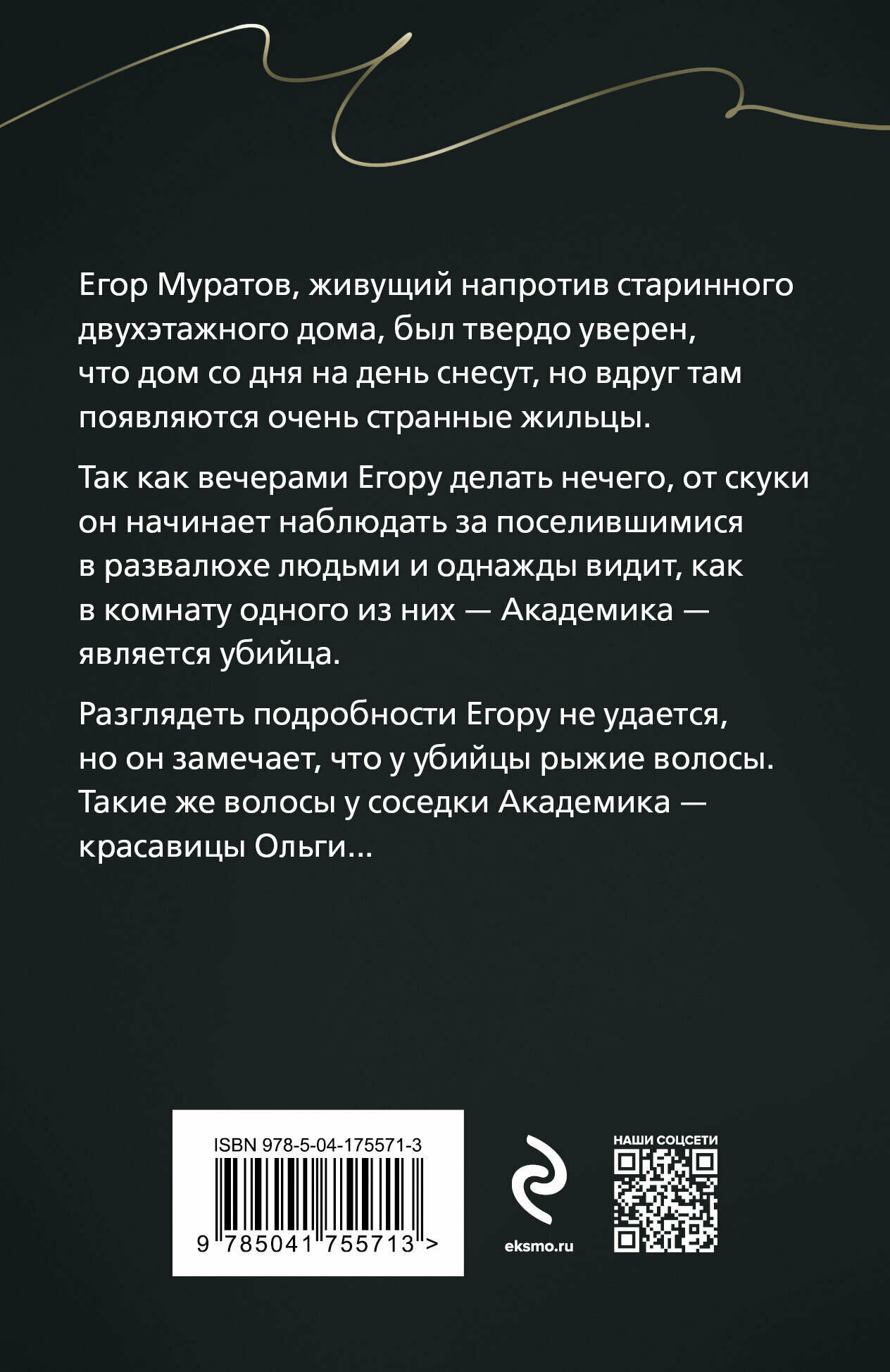 Егор Муратов, живущий напротив старинного двухэтажного дома, был твердо уверен, что дом со дня на день снесут, но вдруг там появляются очень странные жильцы. Так как вечерами Егору делать нечего, от скуки он начинает наблюдать за поселившимися в развалюхе людьми и однажды видит, как в комнату одного из них — Академика — является убийца. Разглядеть подробности Егору не удается, но он замечает, что у убийцы рыжие волосы. Такие же волосы у соседки Академика — красавицы Ольги