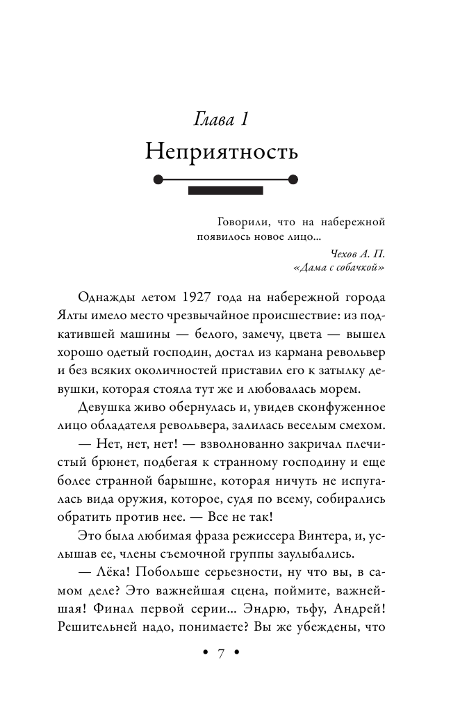 Ялта, 1927 год. Пока коллеги наперегонки снимают картины к юбилею революции, режиссер Борис Винтер начинает работу над масштабным приключенческим фильмом. Однако далеко не все идет так, как было запланировано: средств не хватает, рискованный трюк приводит к травме, во время съемок на набережной в море находят утопленника, а потом и в самой съемочной группе происходит убийство…