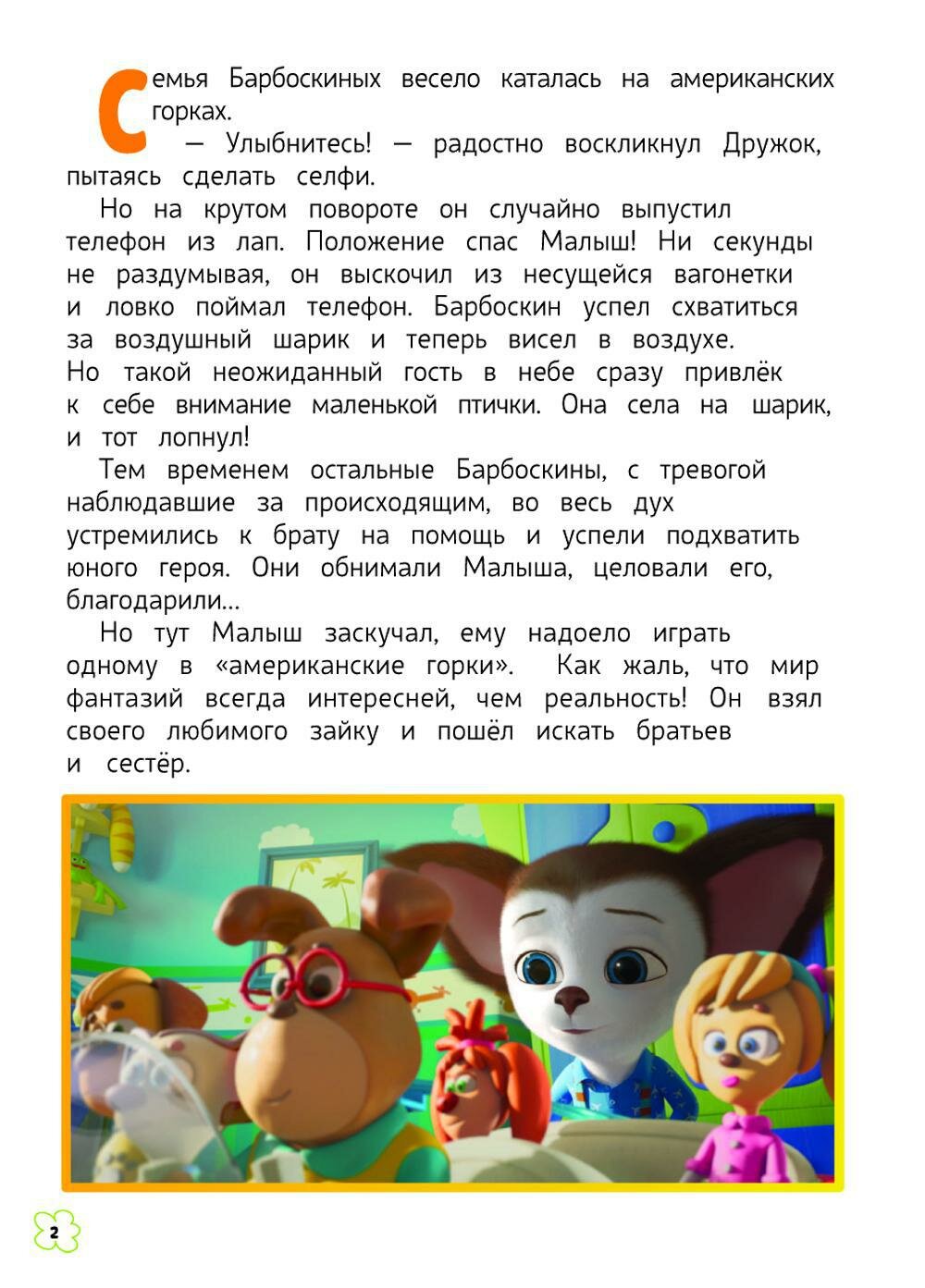 В этой книге юных поклонников мультсериала «Барбоскины» ждут новые приключения любимых героев — Малыша, Лизы, Розы, Дружка и Гены, а также их родственников и друзей.