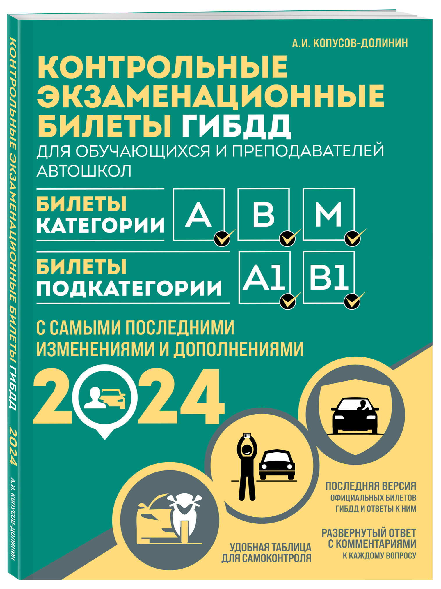 Контрольные экзаменационные билеты ГИБДД для обучающихся и преподавателей автошкол. Категории А В M подкатегории А1 В1 на 2024 год (Копусов-Долинин Алексей Иванович); ООО "Издательство "Эксмо", 2023