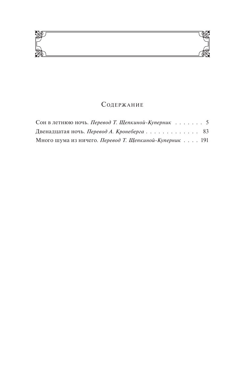 Переиздание избранных комедий Уильяма Шекспира («Сон в летнюю ночь», «Много шума из ничего», «Двенадцатая ночь, или Что угодно») с новым шикарным оформлением и закрашенным обрезом. Переводы мастеров литературы — Татьяны Щепкиной-Куперник и Эльги Линецкой. Мировой бестселлер! Культовые произведения вечной классики с несчетным количеством экранизаций, постановок и ретеллингов.