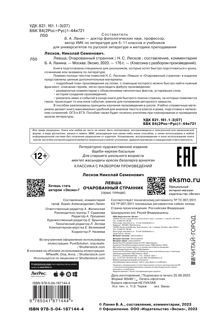 Сервис сравнения цен СкидкаГИД предлагает сравнить цены на товар «Книга: Левша. Очарованный странник (Лесков Николай Семенович); ООО "Издательство "Эксмо", 2023»