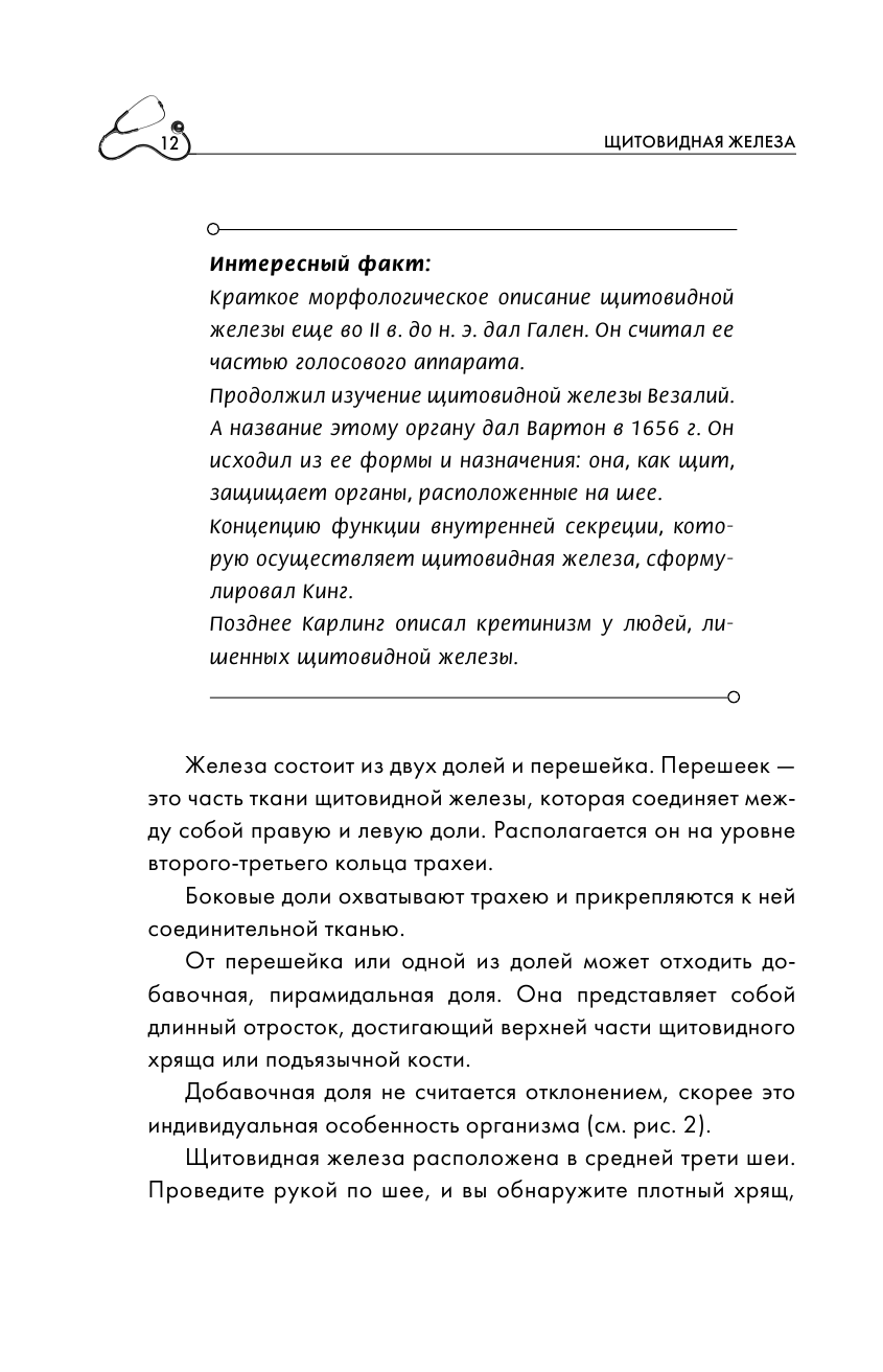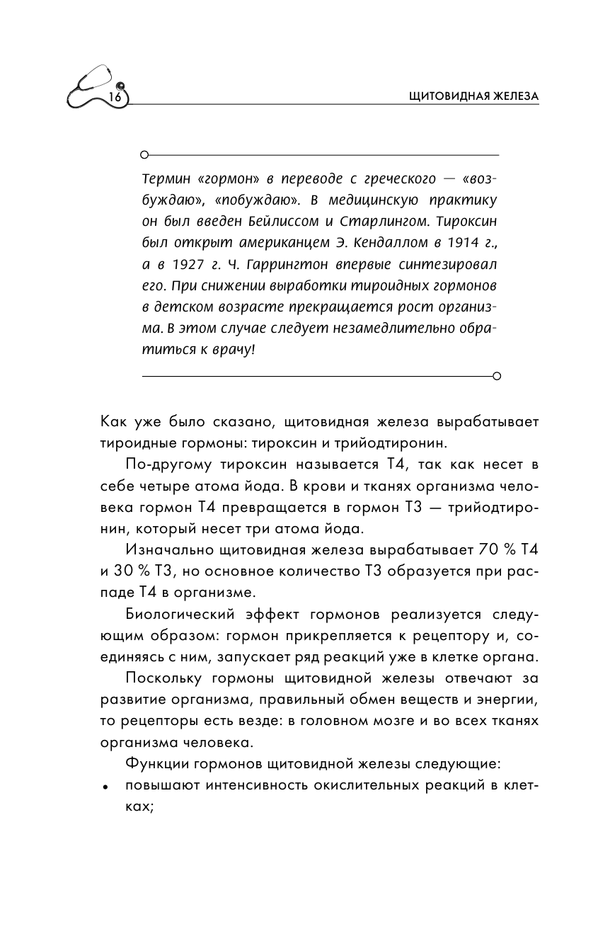 Риск получить заболевание щитовидной железы касается абсолютно каждого человека — ведь наш организм не может синтезировать йод самостоятельно, а значит, мы получаем его только с продуктами питания. Игнорирование данного факта может стать причиной возникновения осложнений и сопутствующих заболеваний, таких как рак и бесплодие у женщин. Они в свою очередь могут подвергнуть вашу жизнь и жизнь ваших близких серьезной опасности, если вовремя не приступить их к лечению. В каждой главе автор дает характеристику заболеваниям щитовидной железы, описывает причины их появления и симптомы, а также наиболее эффективные способы диагностики и лечения.