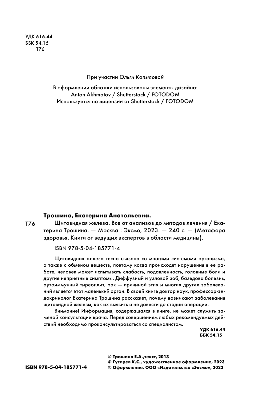 Щитовидная железа. Все от анализов до методов лечения (Трошина Екатерина Анатольевна); ООО "Издательство "Эксмо", 2023