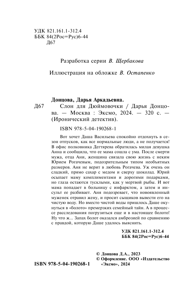 Книга: Слон для Дюймовочки (Донцова Дарья Аркадьевна); ООО "Издательство "Эксмо", 2024