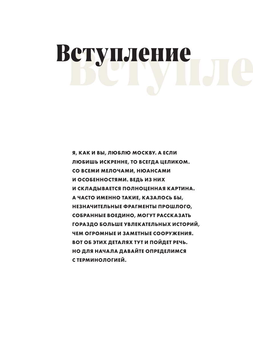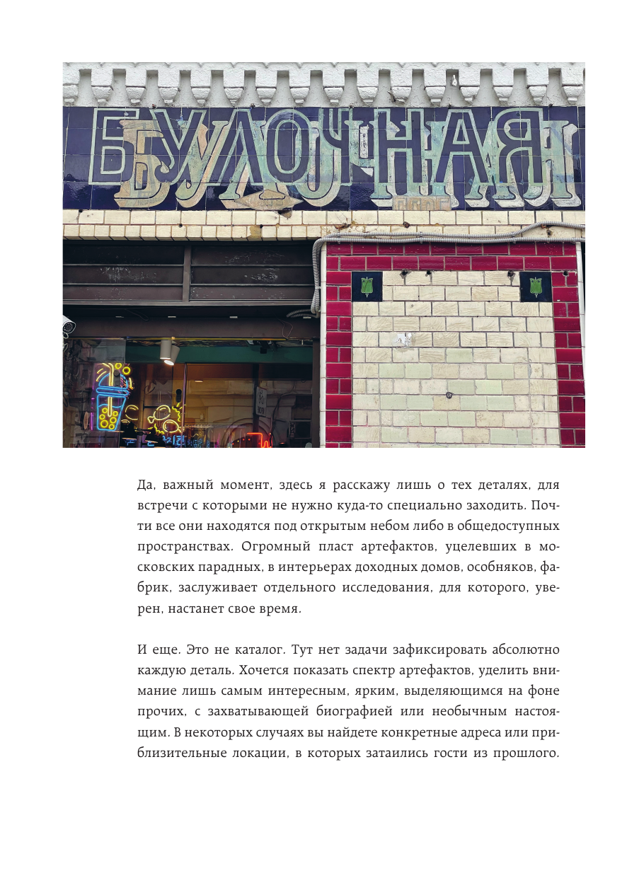 «Ну наконец-то есть большой и дотошный материал про московские артефакты, которые десятки лет все считали мусором под ногами, а они оказались кладом капитана Флинта! Шикарно, что эту книгу написал человек, который изучил весь город своими ногами, а не сканером в библиотеке. Просто берите этот гайд и идите обожать Москву, смотреть новым взглядом на сто раз пройденные улицы и фанатеть от того, как много у нас есть секретиков и уникальных историй». — Наталья Тарнавская, главарь трудкоммуны «Вспомнить всё»
